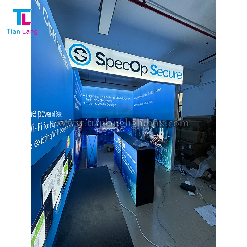 Удобна складна алуминиева тканина 3x3 Експозиционен показ Търговски показване За комерсиална световна кутия Стойка от тканина Световна кутия