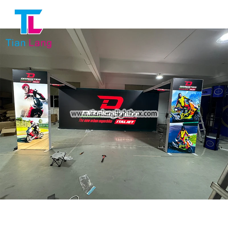 Лесен Монтаж Персонализиран Дизайн Експозиционна Промоция Стенд Полиестерова Ткан Алуминиев SEG LED Поп-up 10x20 Рекламна Светеща Кутия