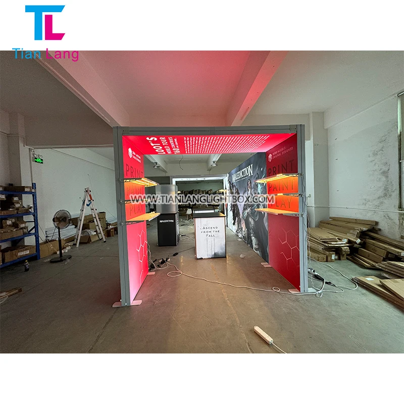Популярни продажби на модулно конструирана алуминиева рамка SEG напрегната тканична световна кутия Портативен LED 10x20 стенд за ярмарки