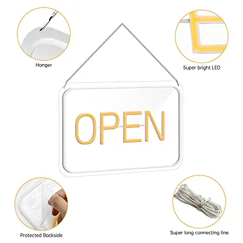 LED Неонов знак „Отворено“ 16х9 инча Нов електричен знак Супер ярка осветление за бизнес Знакове за барове, магазини, кафе, хотел и други