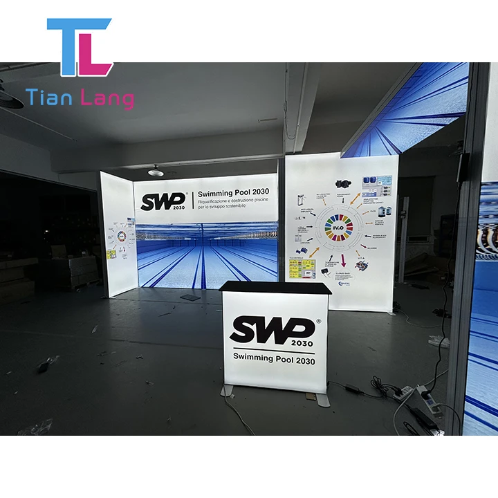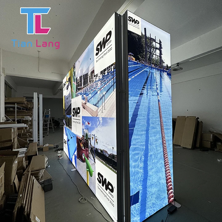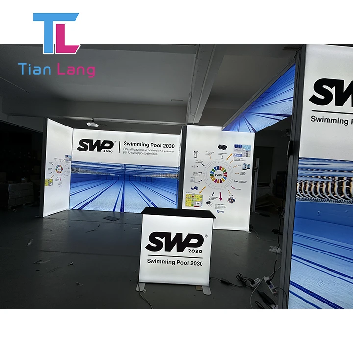 Нов продукт Професионална преносима алуминиева профилна двустранна тъканена световна кутия за текстилна изложба