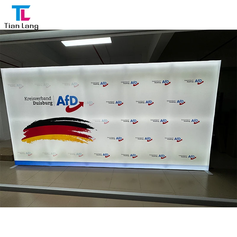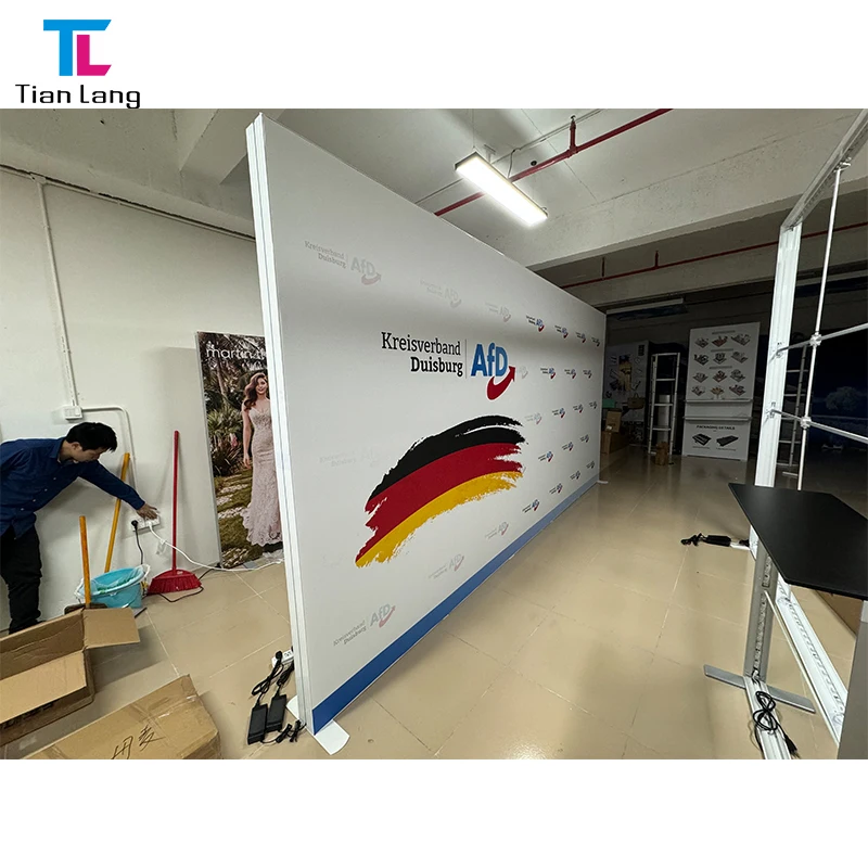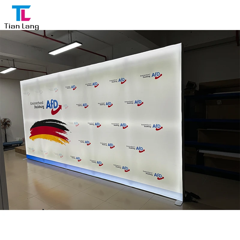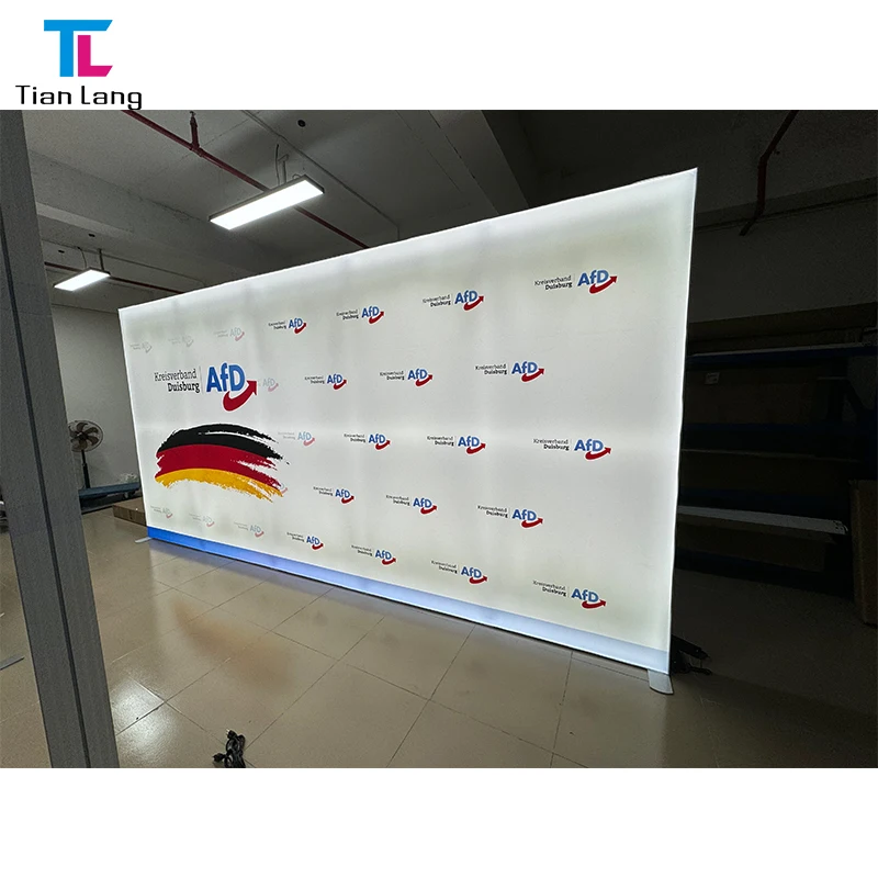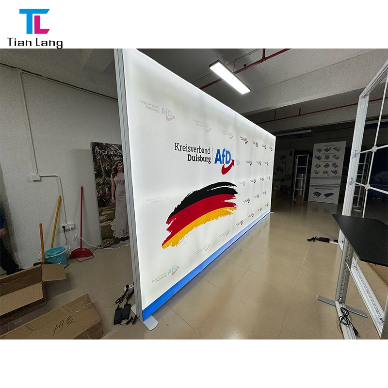 Nou Mostrador Publicitàri de Mostres Comercials Portàtil i de Poc Pès 4*2.5m amb Cadre d'Alumini Resistente Sense Cadre amb Tensió de Teixit SEG i Il·luminació LED