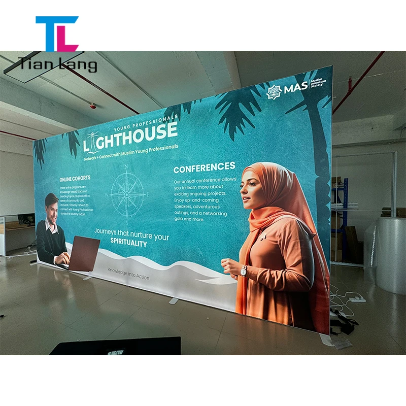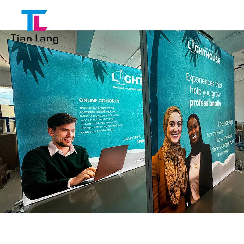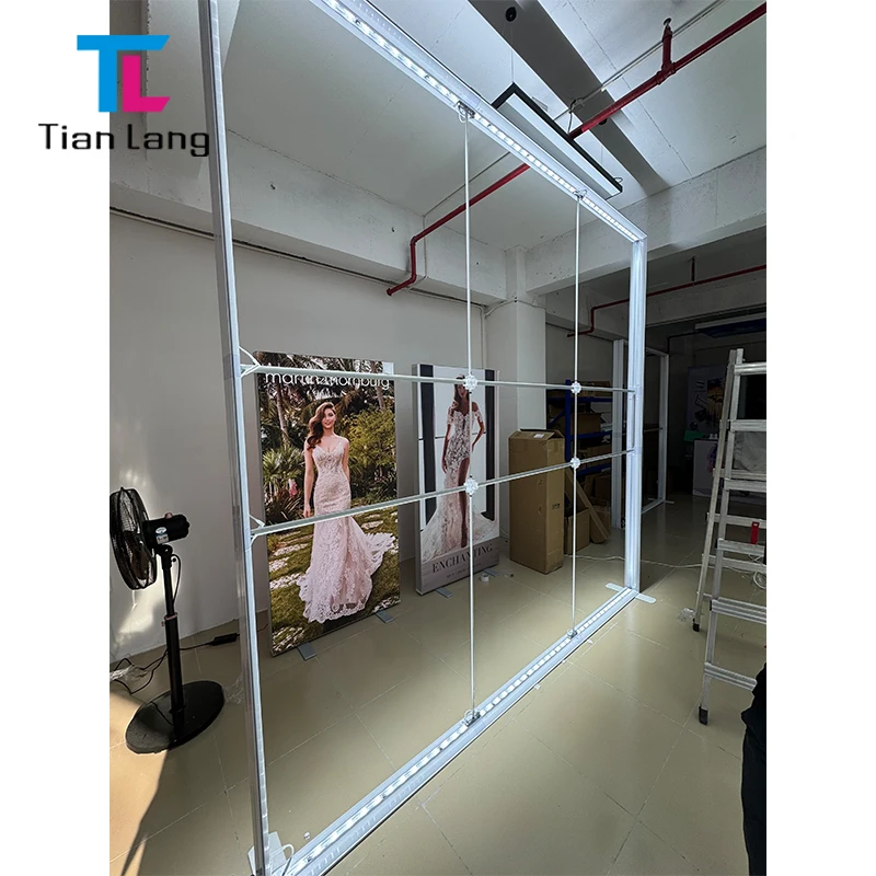 Idees de publicitat per a ferials amb perfils quadrats LED, marc de perfil d'alumini, caixa de llum de teixit SEG sense eina, bandera textil