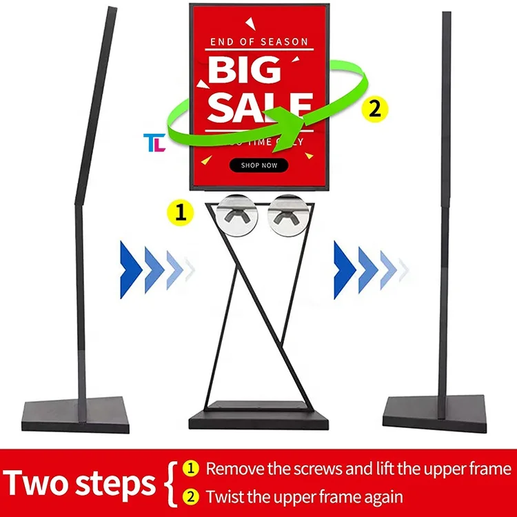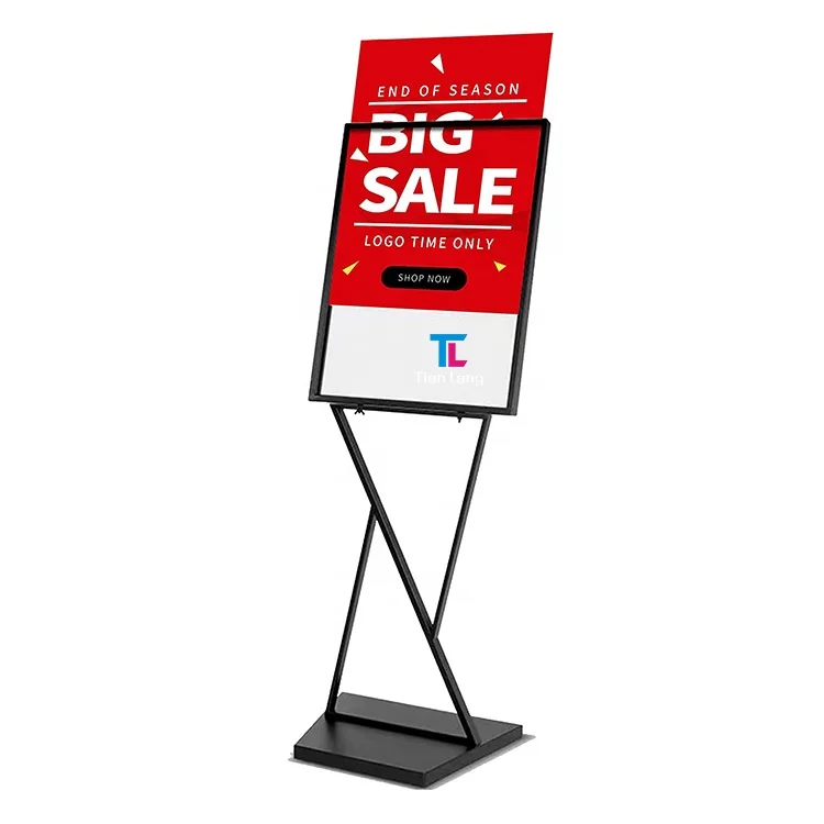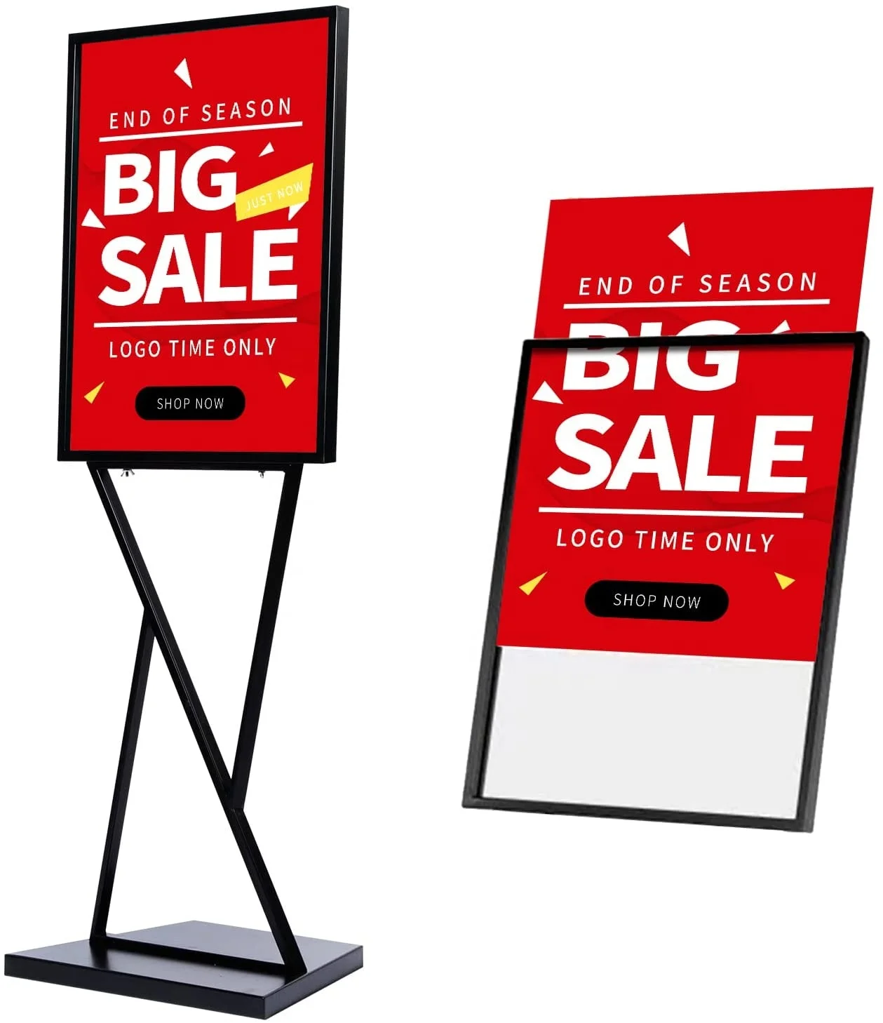 Stojan pro podlahové plakátové nástavby držitel značek víceúrovňová dvojstranná výstavní deska těžkého účelu s posuvnou kovovou konstrukcí 23x17 palců 1 pěna černá výstavní polička