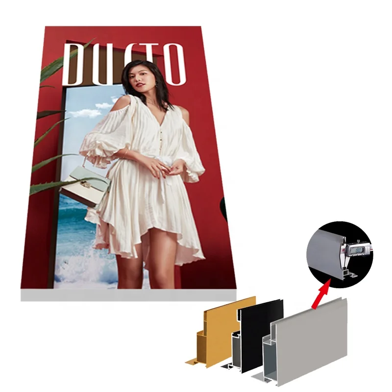 Kabu dvojstranná ultra tenká reklamní vitrína s UV měkkým filmem v rámci z hliníkové slitiny H profil, tahánková sloupcová konstrukce