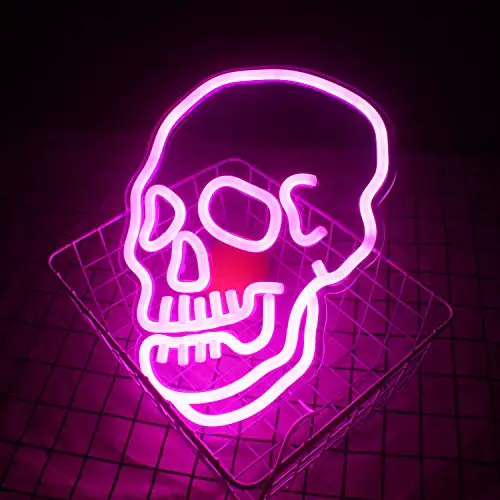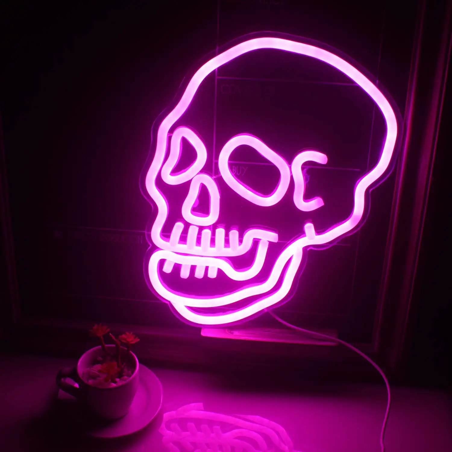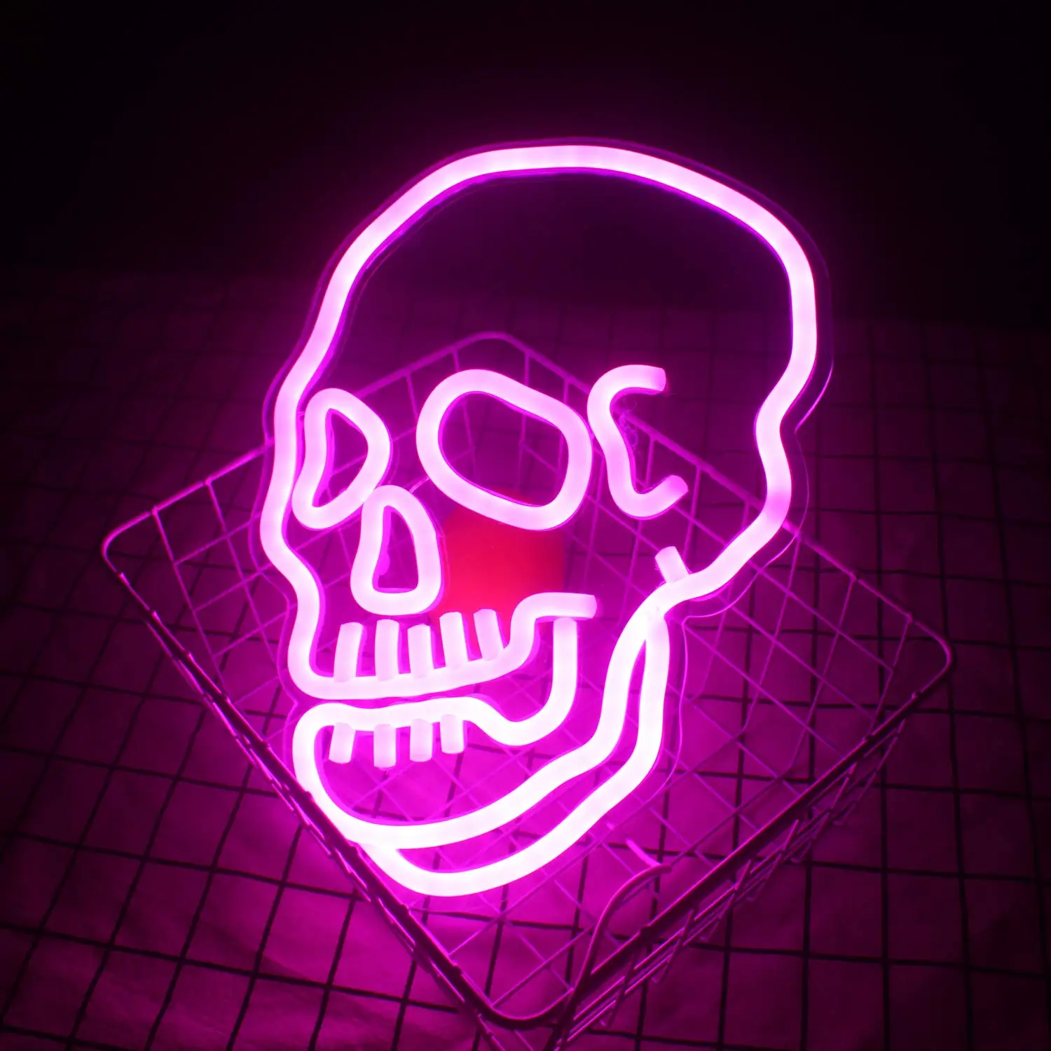 Neonové značky s lebou a kostrou Růžový duch Led nápisy na stěnu Noční světla Stylové výzdoby pro pokoj Ložnice Bar Vánoční oslava