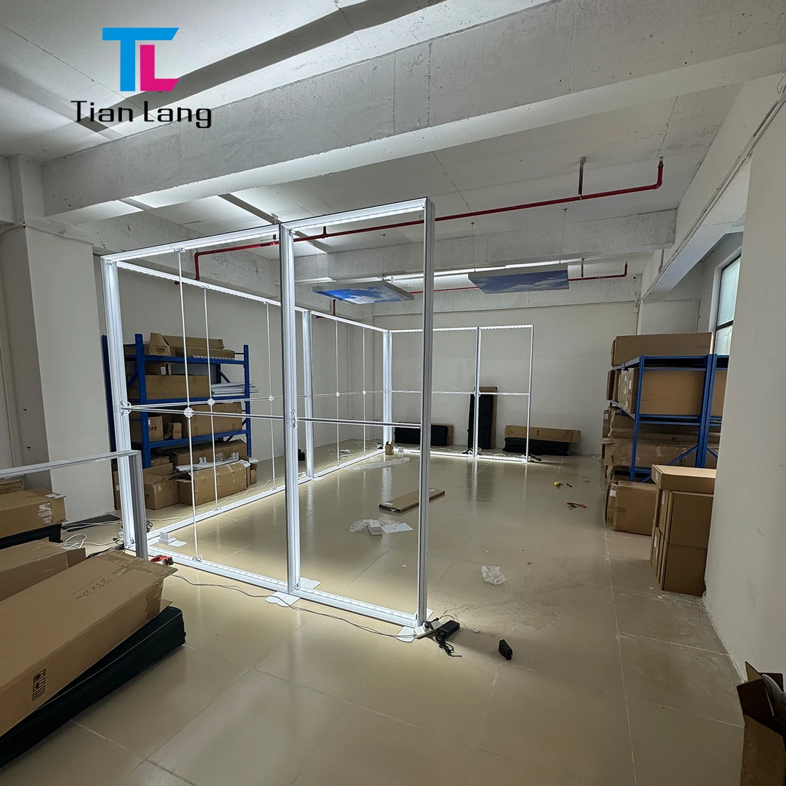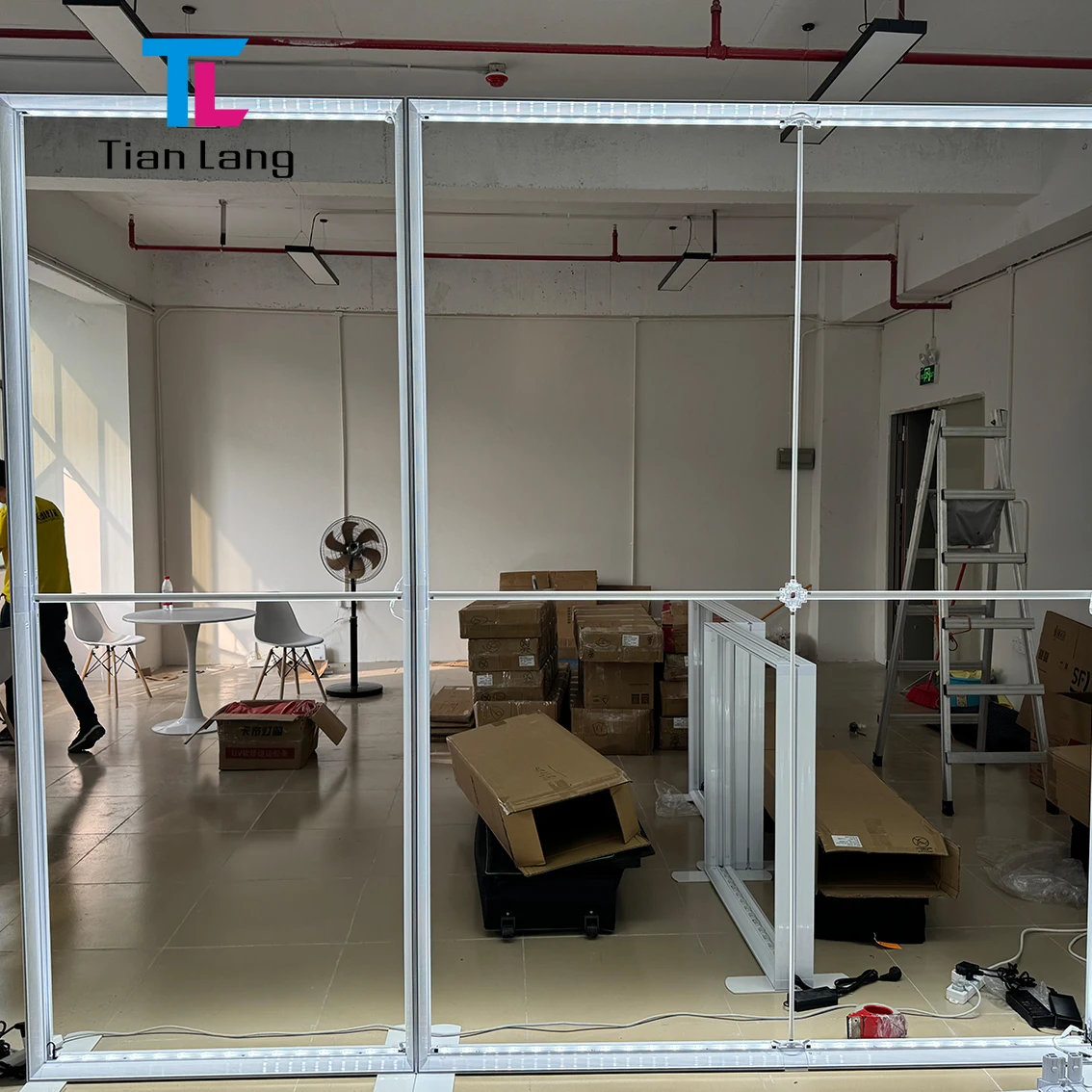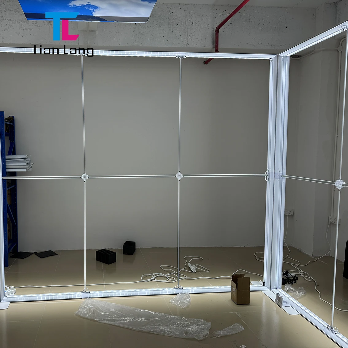 10x10ft Ny ankomst Modulær design Lett at bygge Flydende aluminiumsråmme SEG spændingsklæde LED baglit udstillingsstue