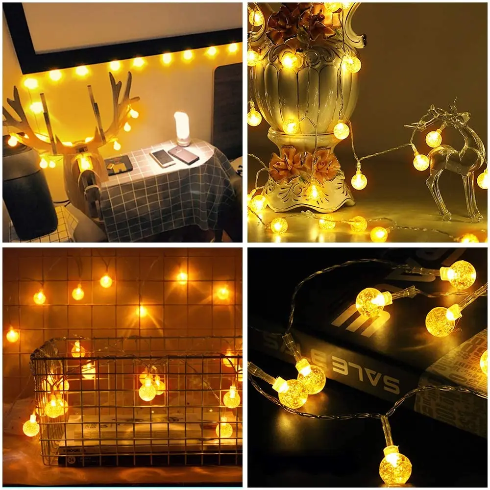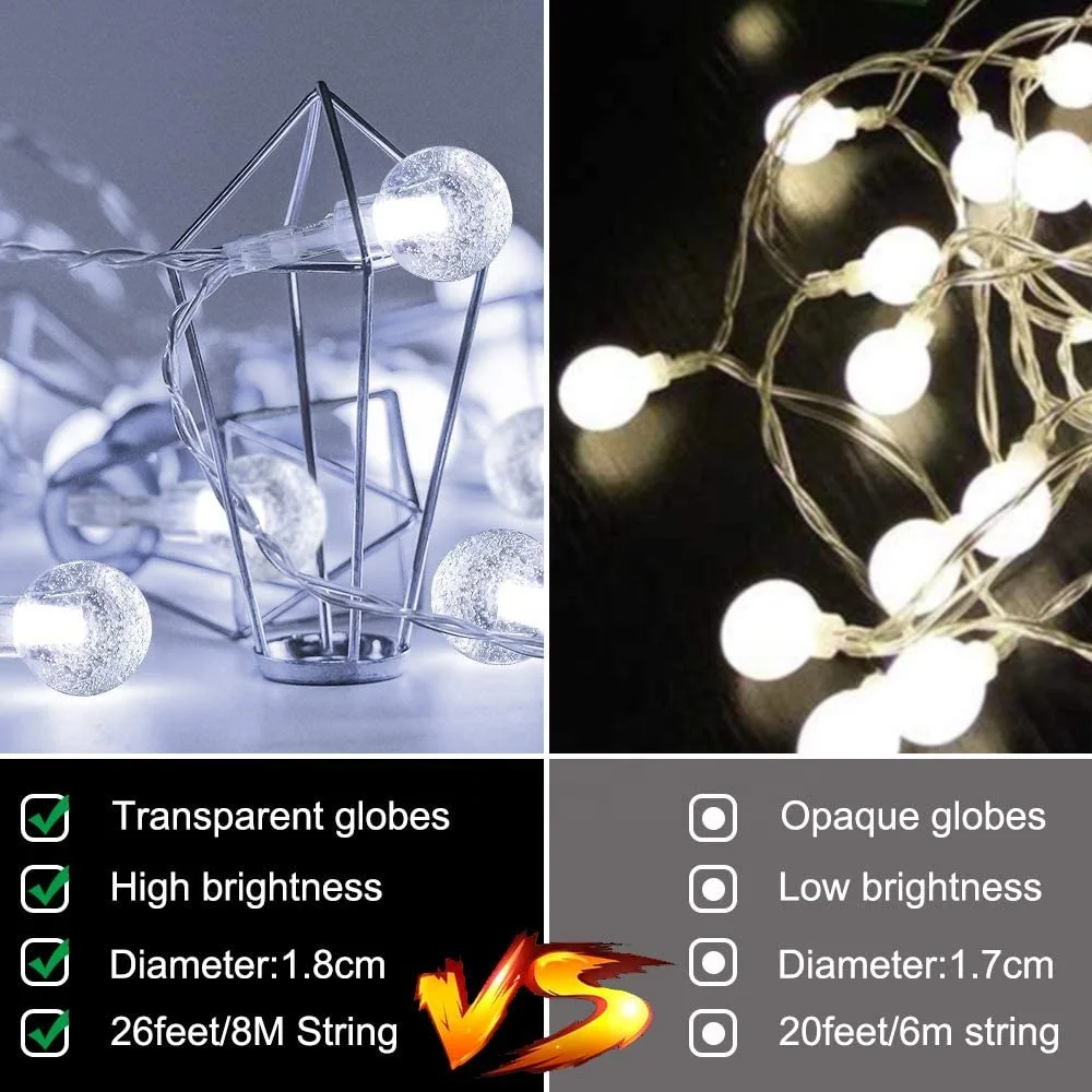 33 FT 80 LED Batteriebetriebene Kugellichterkette Globus String Lights Feen-Dekoration Schlafzimmer Terrasse Innen & Außen mit Fernbedienung Warmweiß