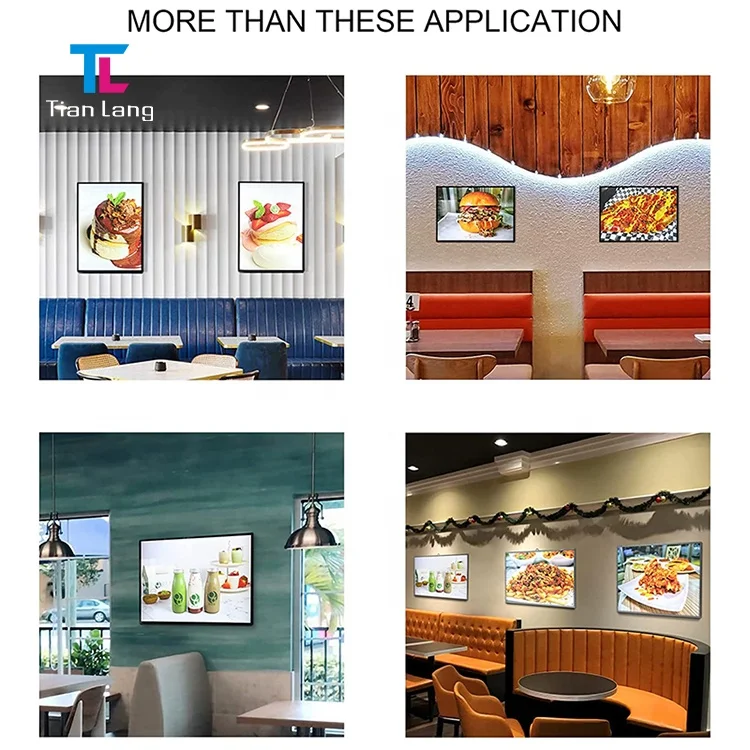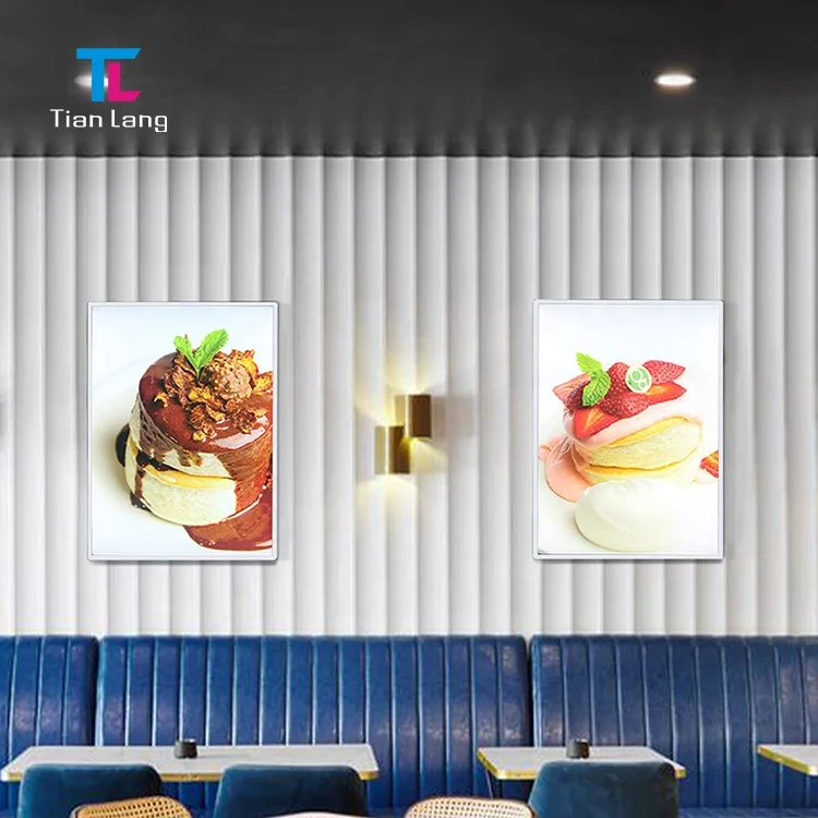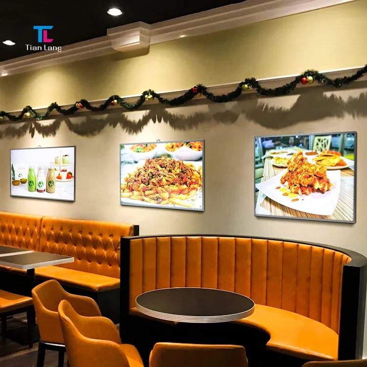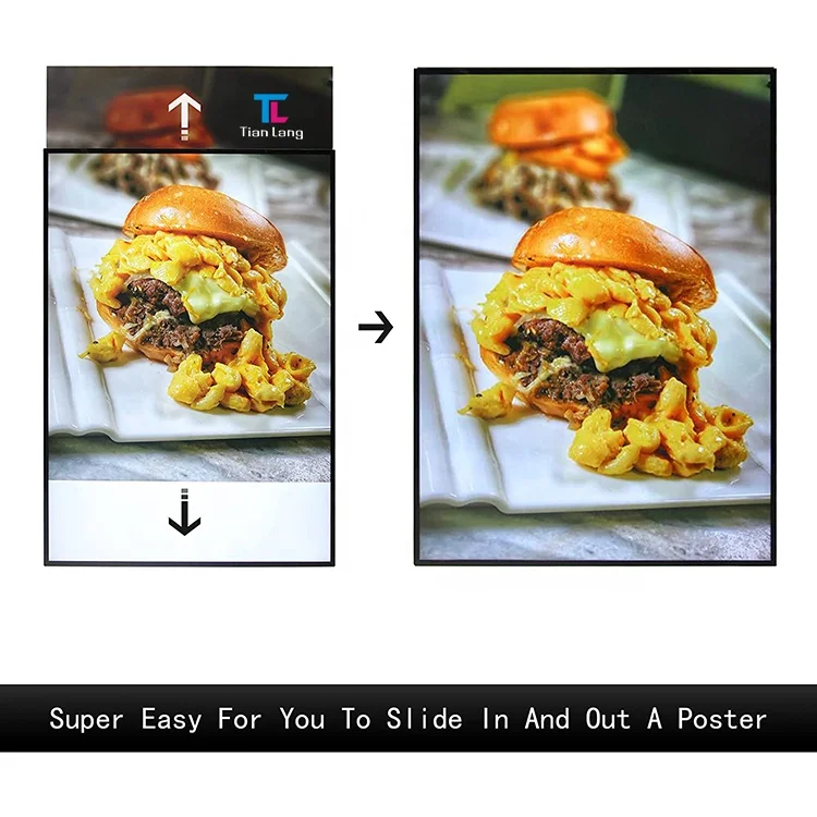 caja de Luz LED Retroiluminada Brilla Marco de Exhibición Porta Carteles Restaurantes Menús Plata