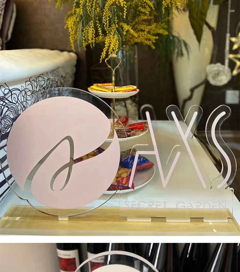 Tarjeta de exhibición mostrador 3d señal publicitaria tridimensional soporte de escritorio personalizado placa de metacrilato letreros letras cristalinas