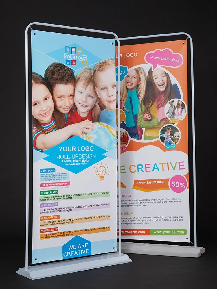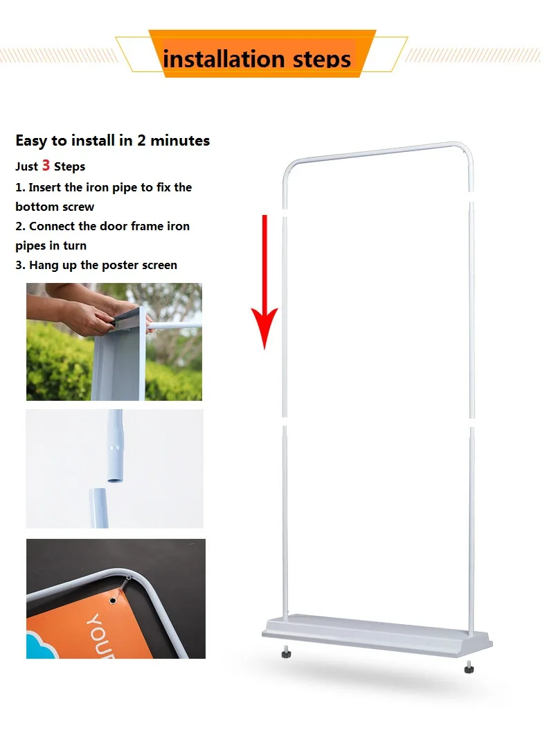 Estante de exhibición tipo puerta 80x180 cartel de exhibición vertical de tarjetas propaganda de piso enrollable diseño de póster personalizado