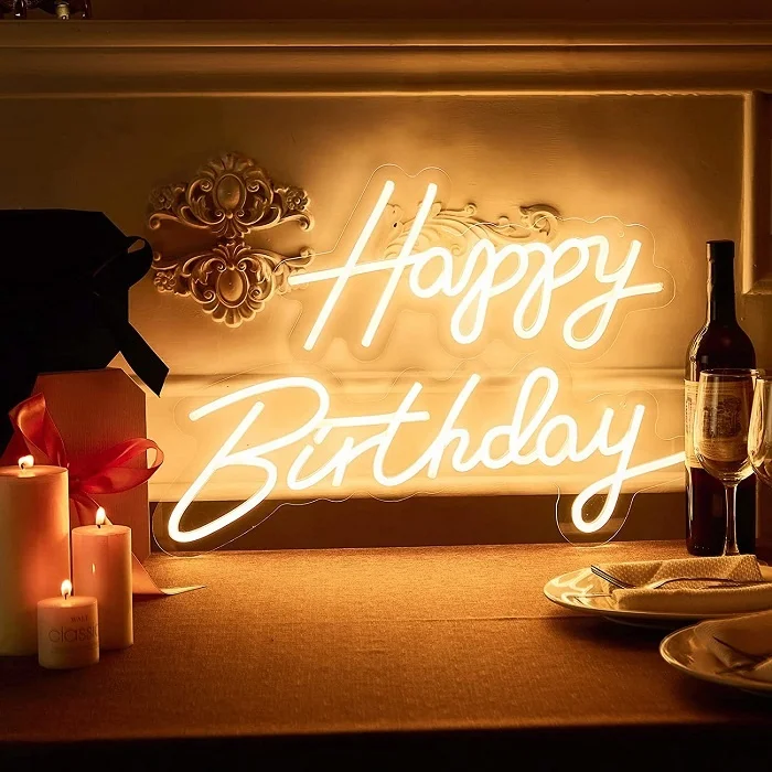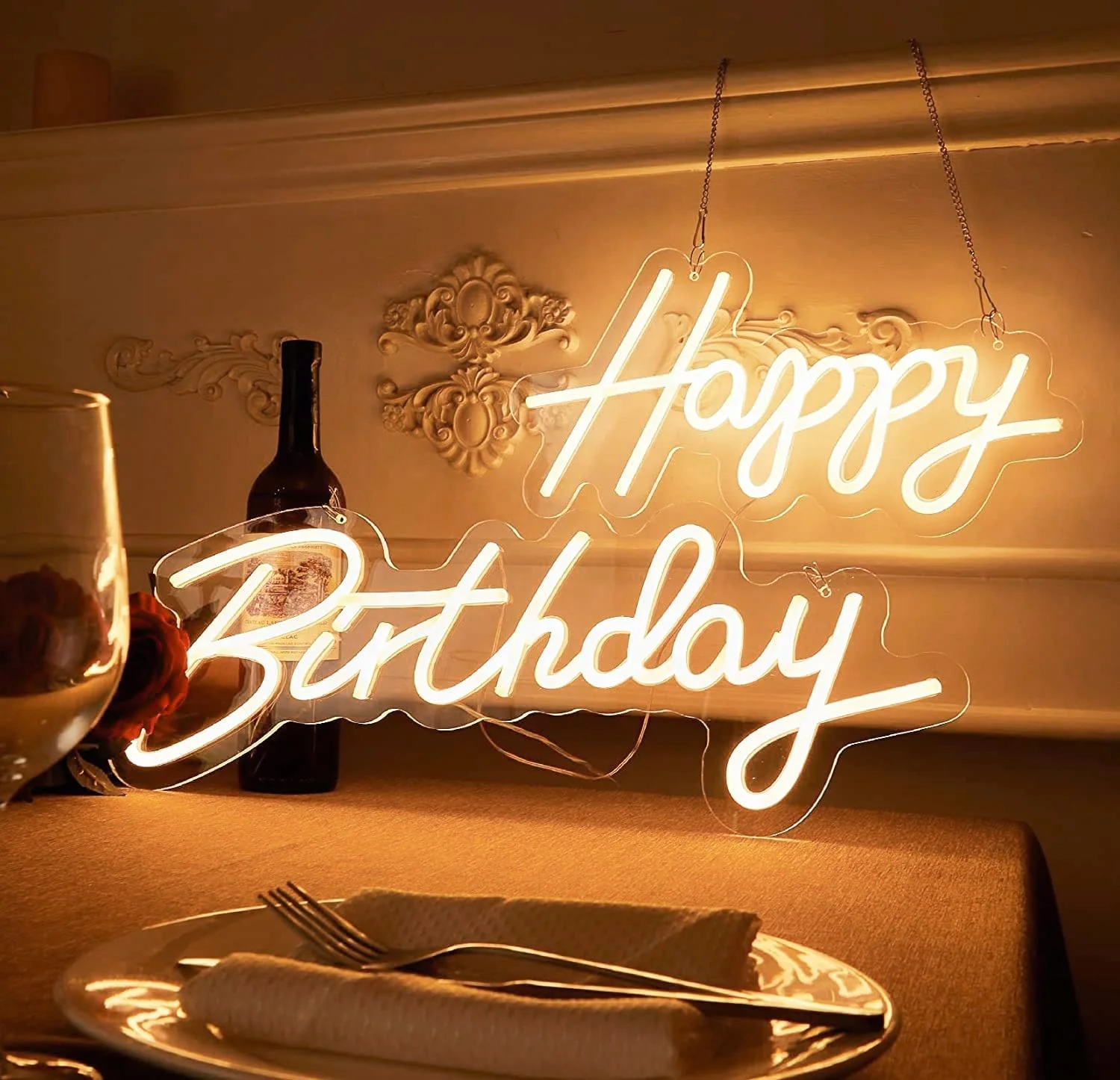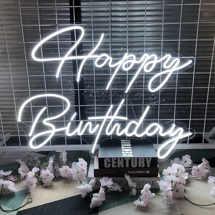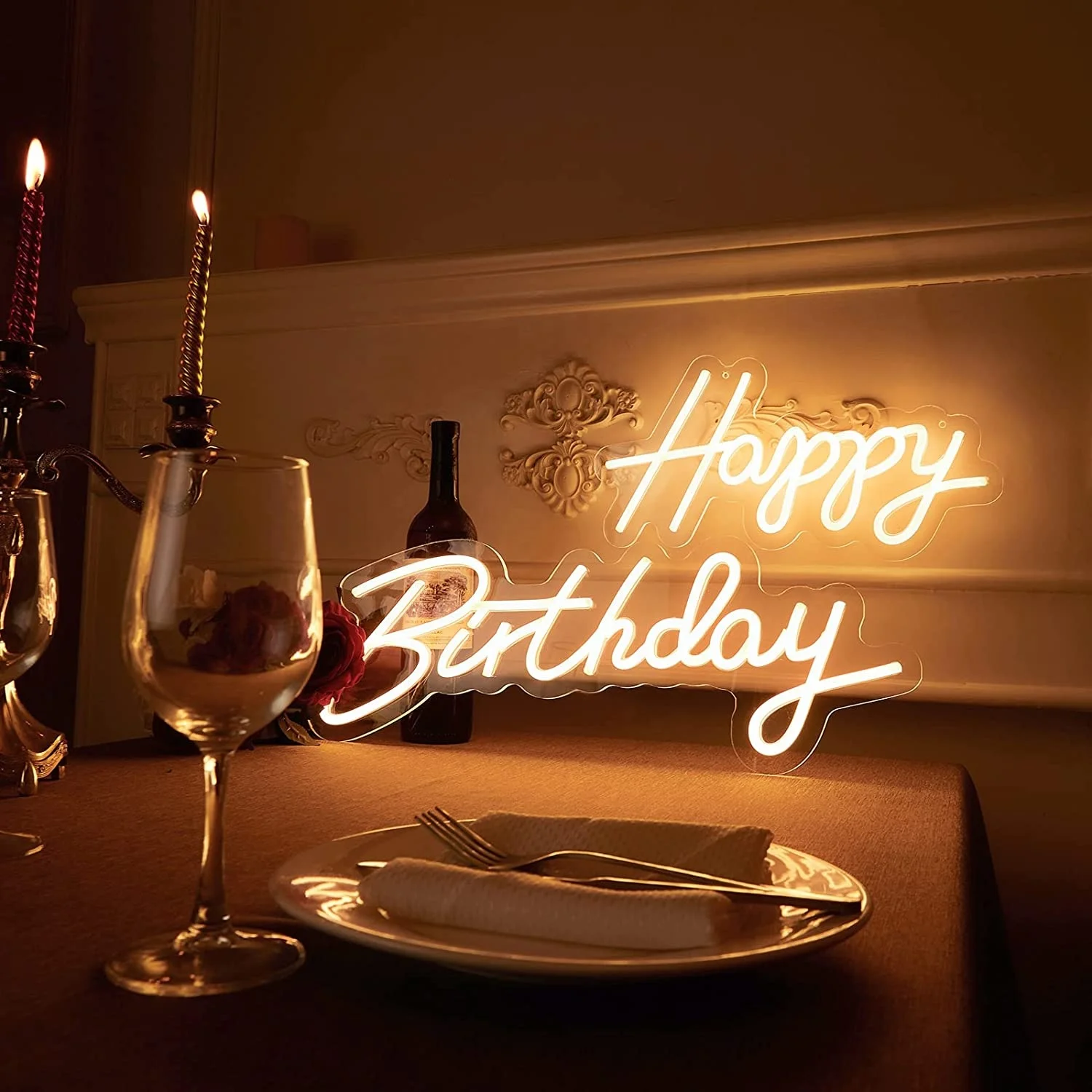 Gran cartel de neón personalizado LED para cumpleaños feliz 28 pulgadas Decoración de pared para fiestas en bares o en casa