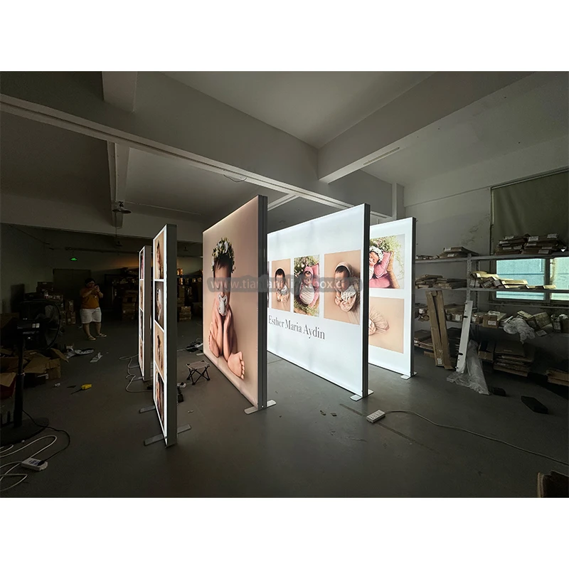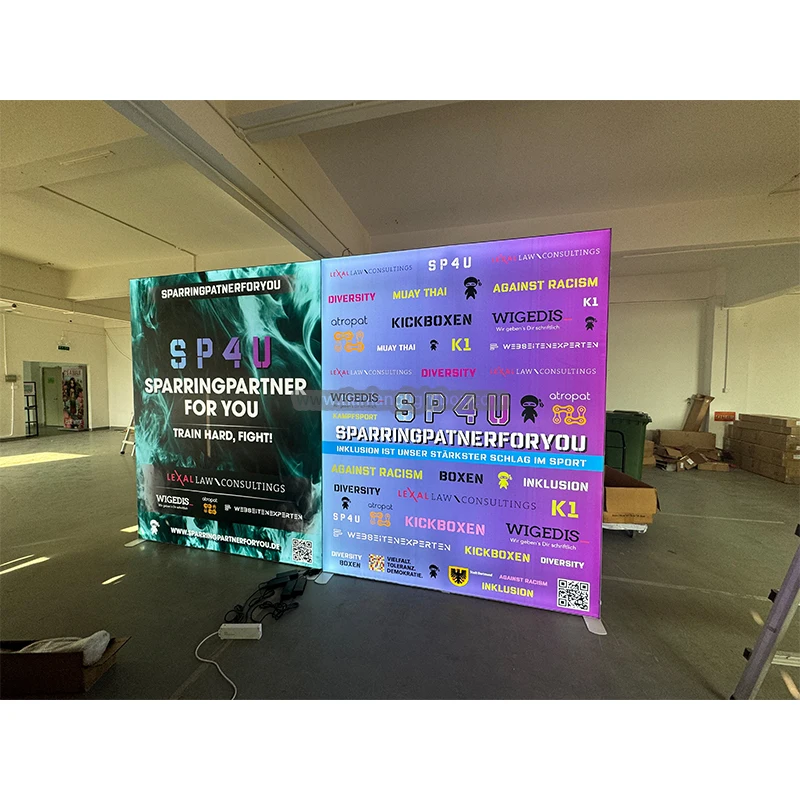 Portable fácil de construir nuevo diseño Impresión personalizada marco pop up publicidad caja de luz retroiluminada fondo de pared exposición comercial pantalla de stand