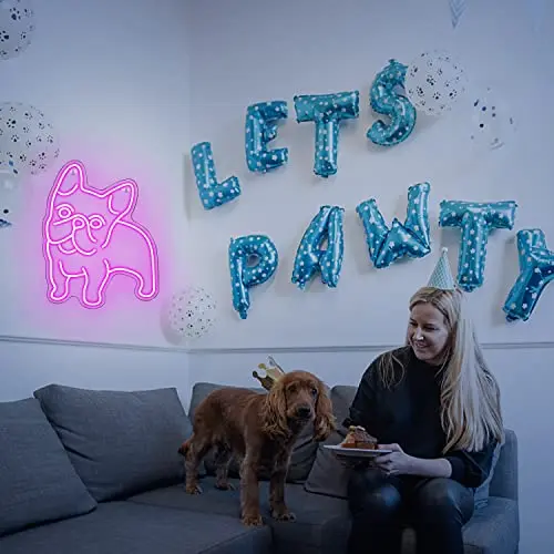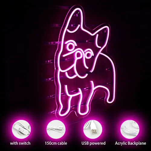 Simo Pet Neonvalo Seinäkoriste Pinki Koira Ilmoitus LED Valot Huone Bedroom Juhlat Joulukausi Olohuone neon french bulldog ilmoitus