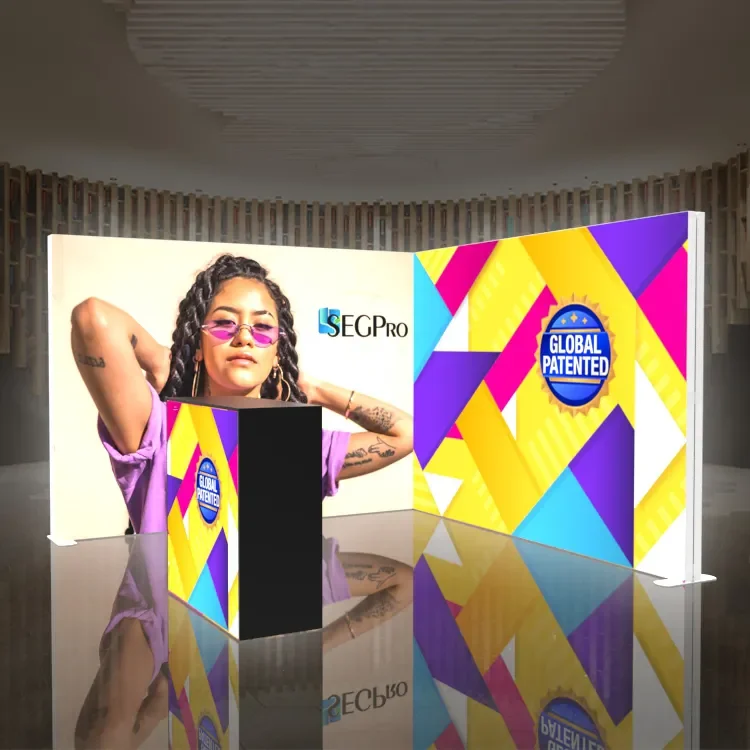 Kynnyttömät 10x10jalkaa alumiinirahkaiset SEG valaisevat kankaan valoja laatikko näyttelykauppakeskus näyttely seisakki näyttö pop-up valaiseva tausta