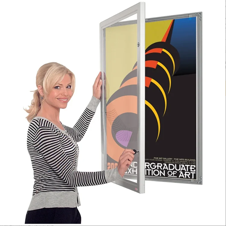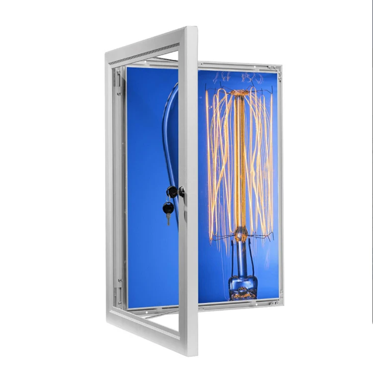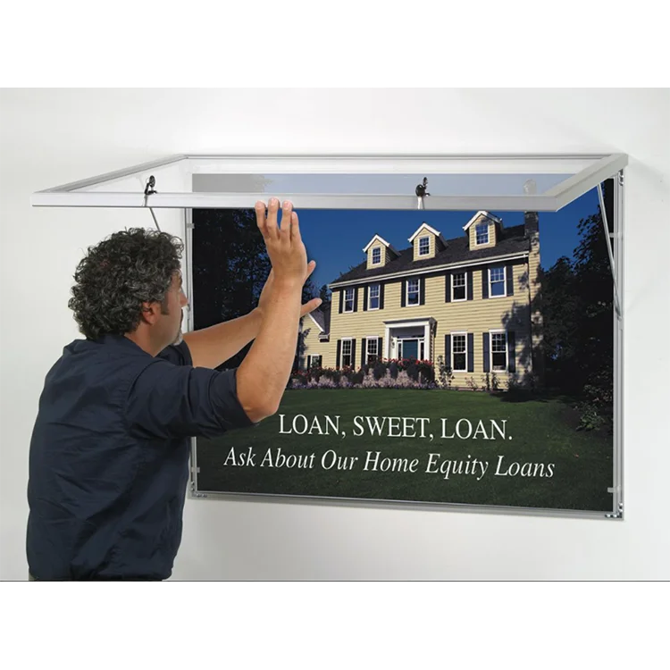 Lukkoiset mainoskehykset voidaan käyttää sisällä ja ulkona. Ne ovat suosituimpia mainoskehyksiämme ulkoiselle käytölle mainosten suojaamiseksi ilmastoehdoksiin.