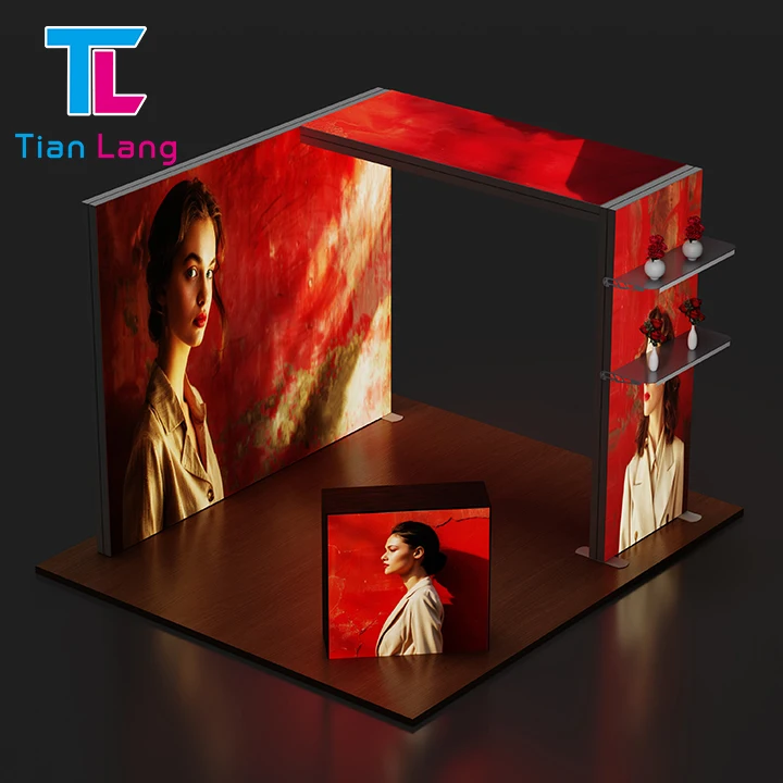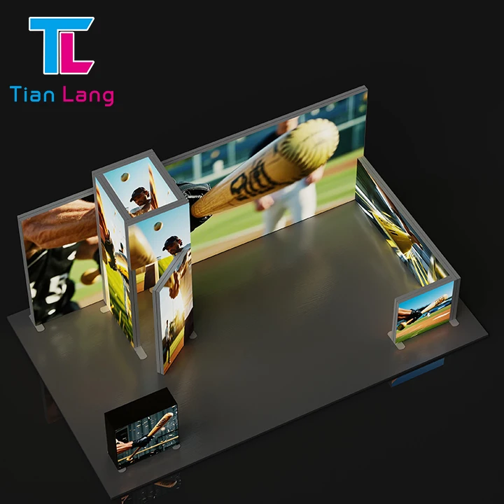 Saincheaptha Faicead Booth Trade Fair Scagán Tuilleadh Reclám Booth Dara Thairbhe Led Reclám Seg Bóithre Soláthar Fábhrac Chos