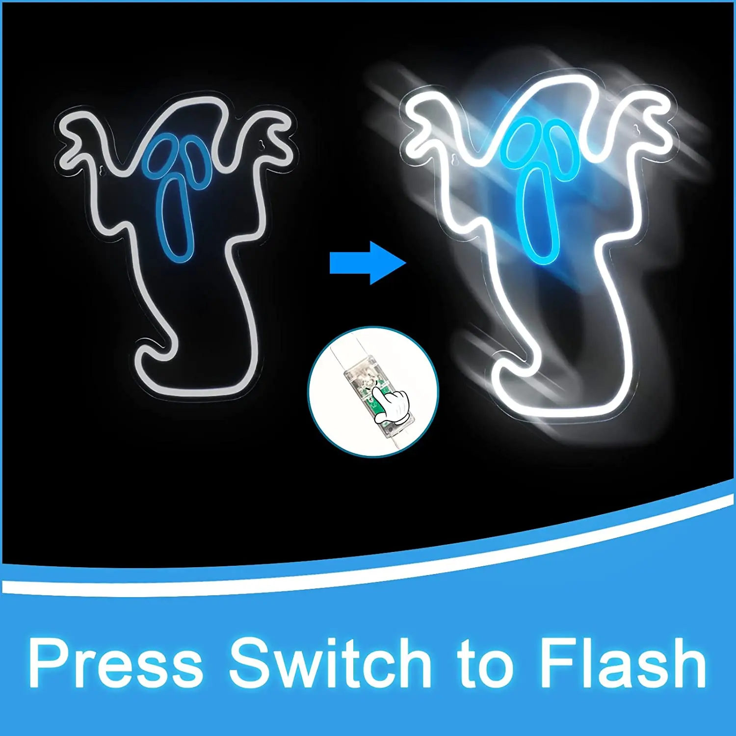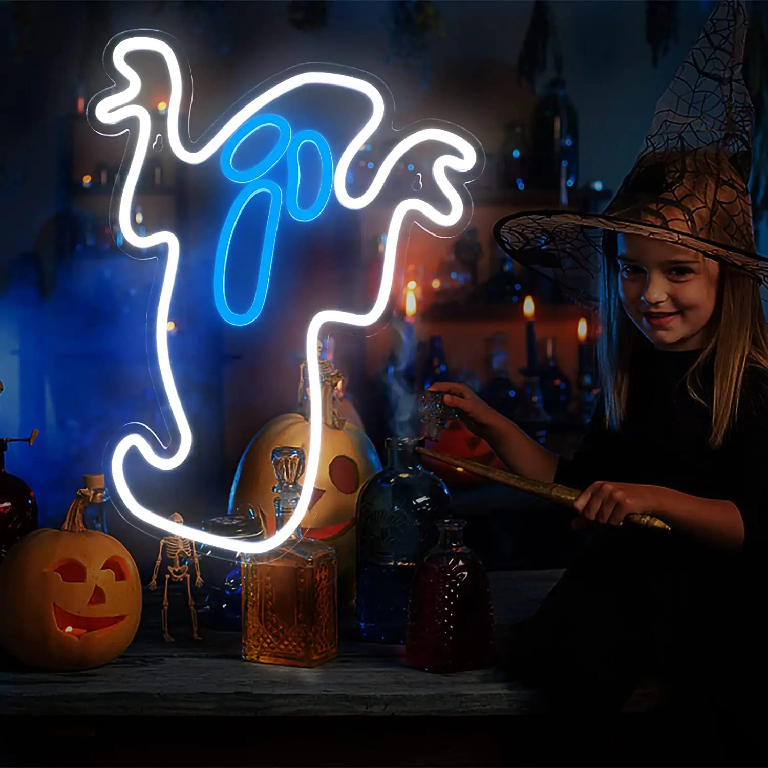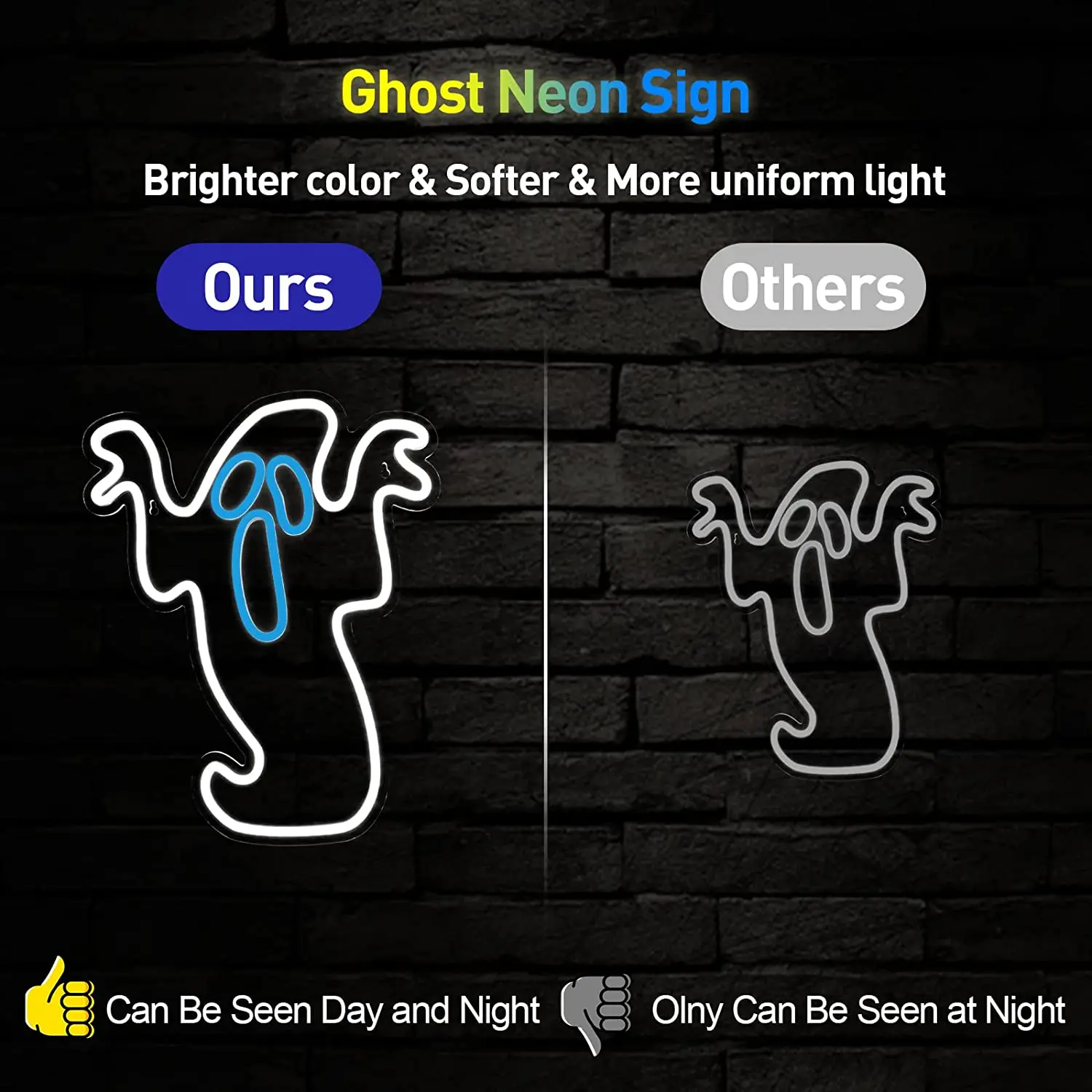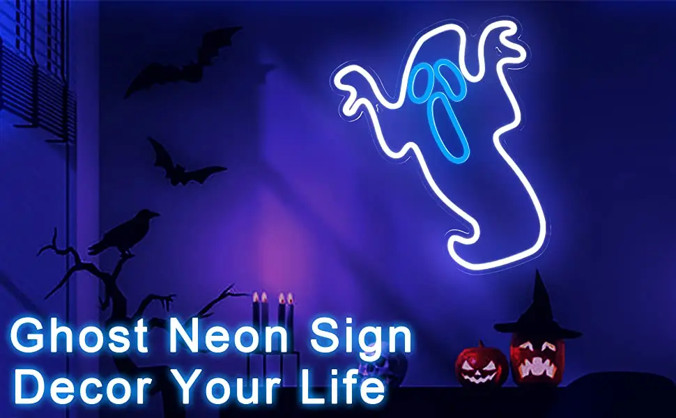 Sighn Nion Scamall Ghost LED Spooky Lá Fhéile Halloween Neon Oifig Light for Bar Party Decor Taispeántas Gaeled 10X8 Incse
