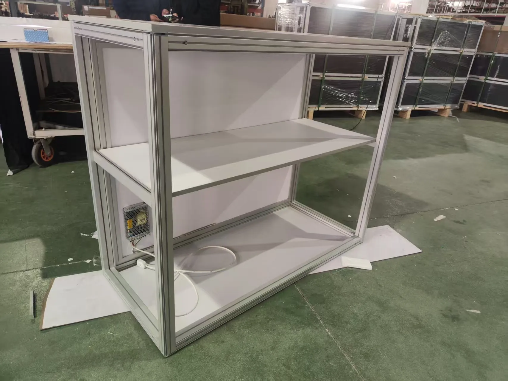 Struchtúr gairmiúil agus staible: Tá sé déanta as crann mór láidir agus páinéil ina bhfuil tuirseacht air, agus is é sin struchtúr láidir agus feabhasach atá in ann freastal ar riachtanais úsáide an-tamailte ar shuíomhanna taispeántais.
