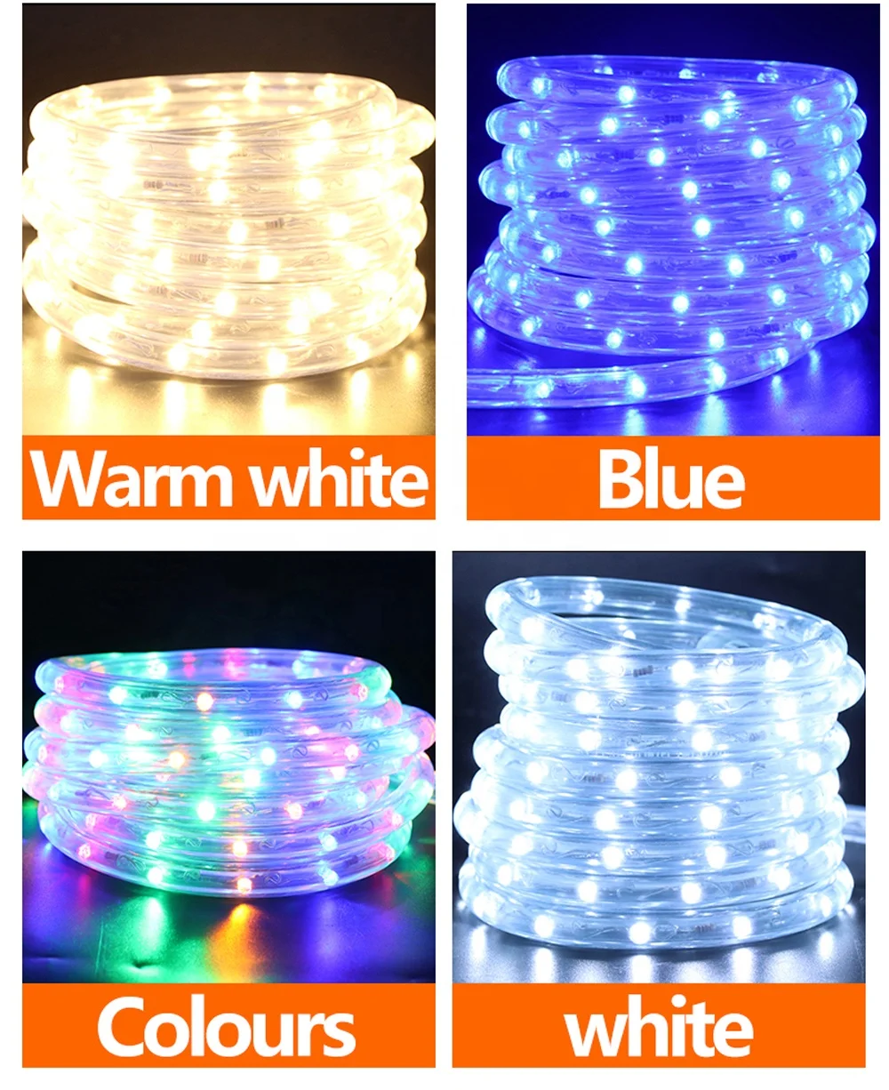striscia al neon da 360 gradi, tubo arcoiris LED tondo 220 V 110 V DC RGB Rope Light nastro impermeabile flessibile per decorazione esterna