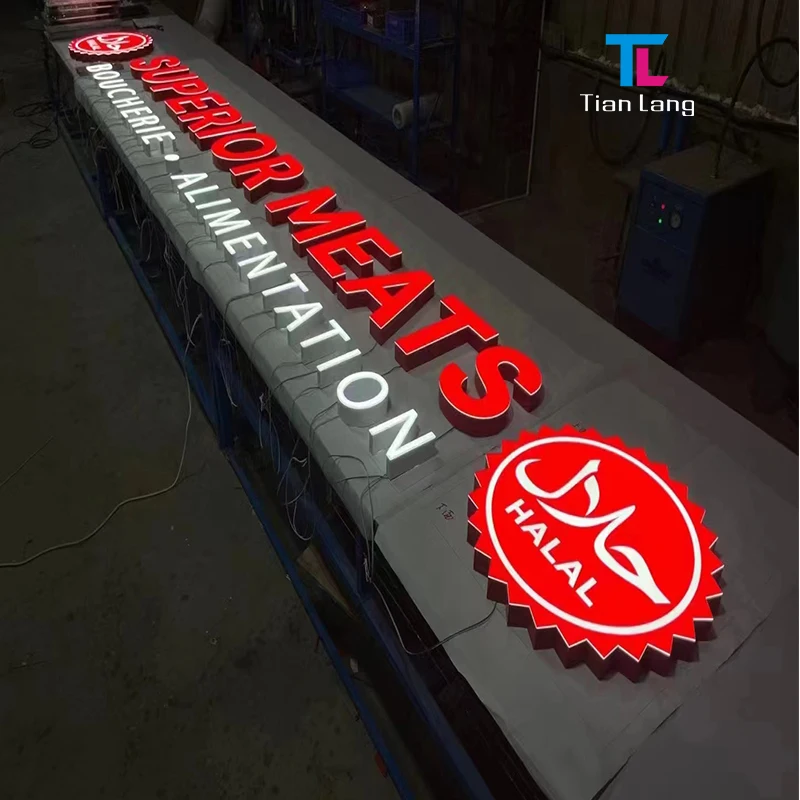 insegne a lettere 3D per negozi, costruite su misura, logo aziendale all'aperto per vetrine con lettere LED illuminate