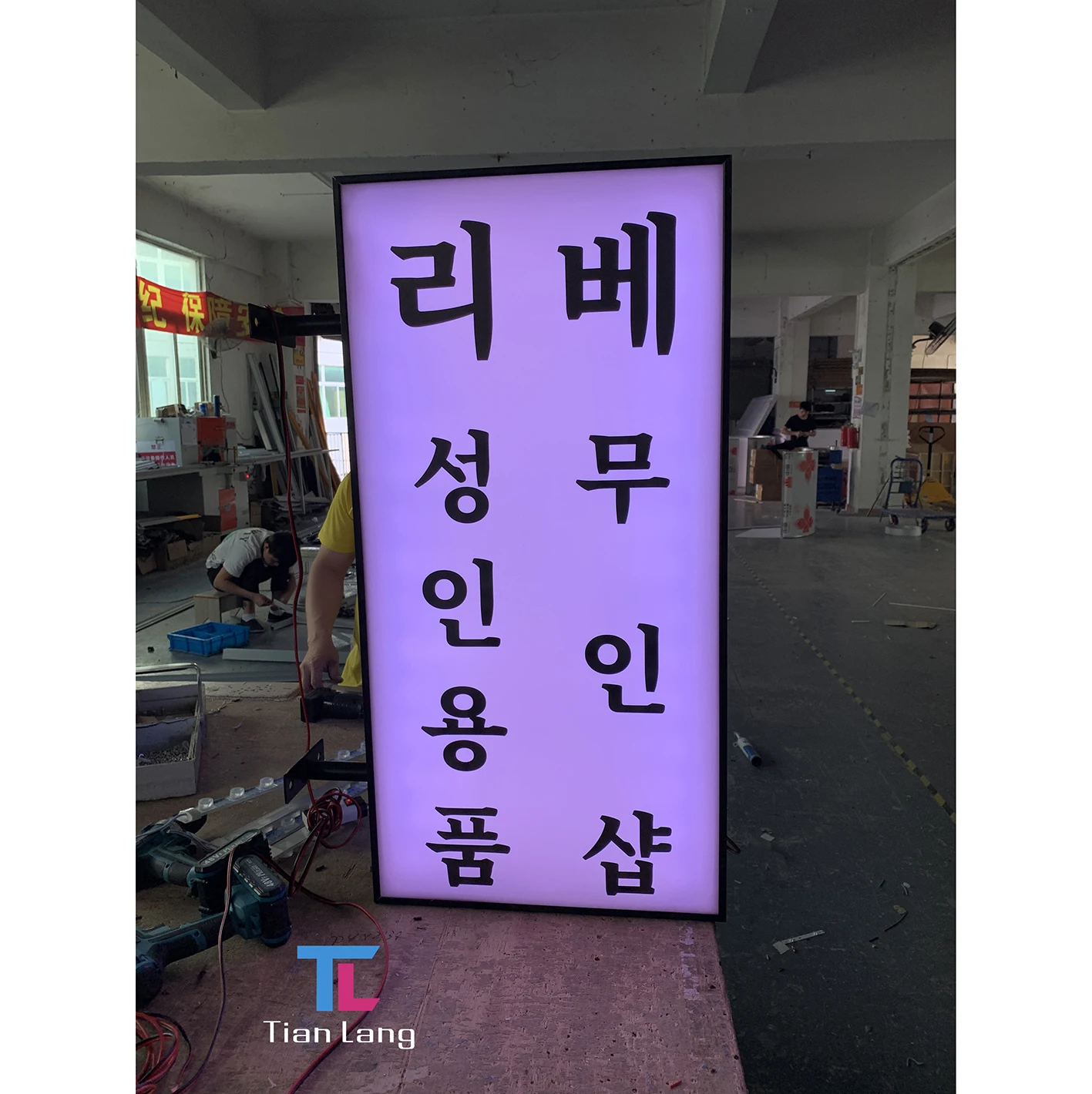 segnaletica in acrilico su misura con cornice esterna in profilo di alluminio per box luminosi