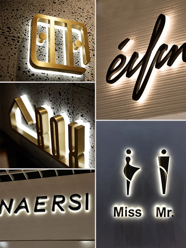 Insegne Elettroniche Lettere in Acciaio Inox Retroilluminato 3D Lettere Canalina Segnali Retroilluminati Scatola retroilluminata acrilico logo 3d design lettera