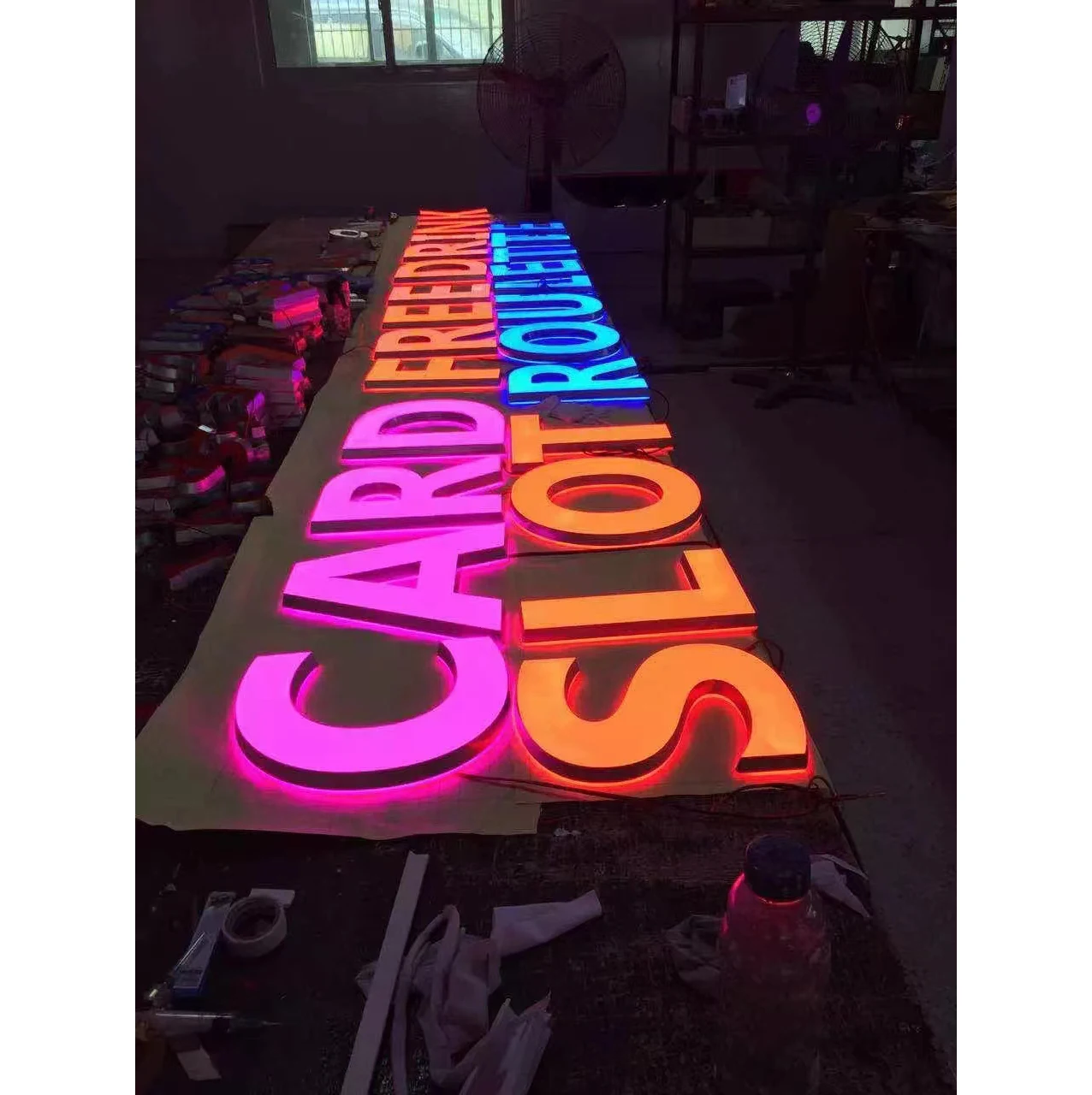 Lettere in LED, lettere in plexiglas, lettere metalliche, lettere con illuminazione frontale senza cornice, segnalazioni per stanze, cartelli direzionali indoor/outdoor e così via.