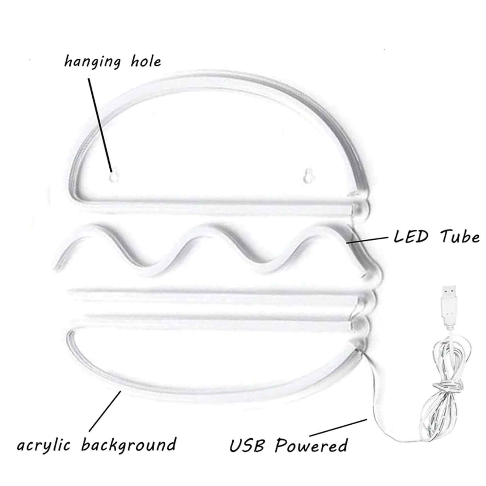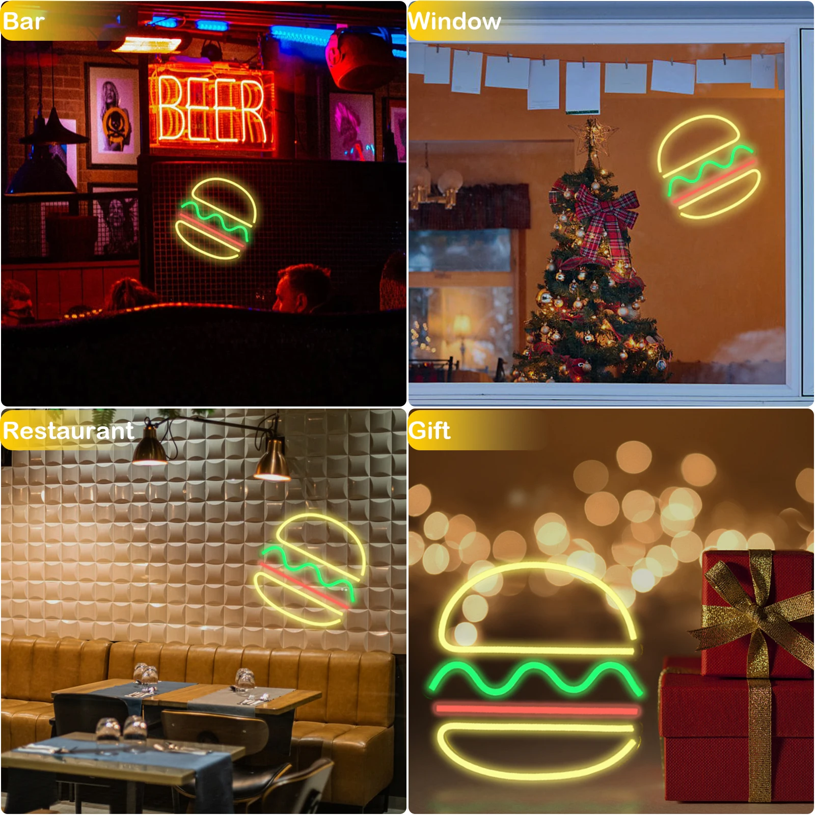 * 🍔【Illumina il Tuo Business】Questa luce al neon originale per hamburger attira lo sguardo delle persone al primo sguardo, lascia un'impressione profonda