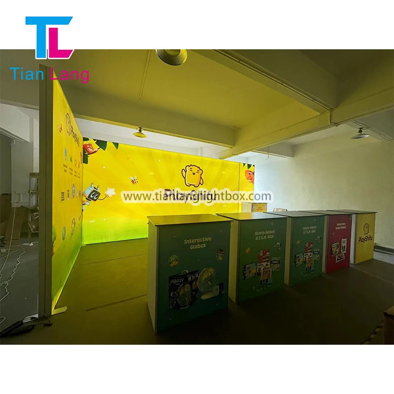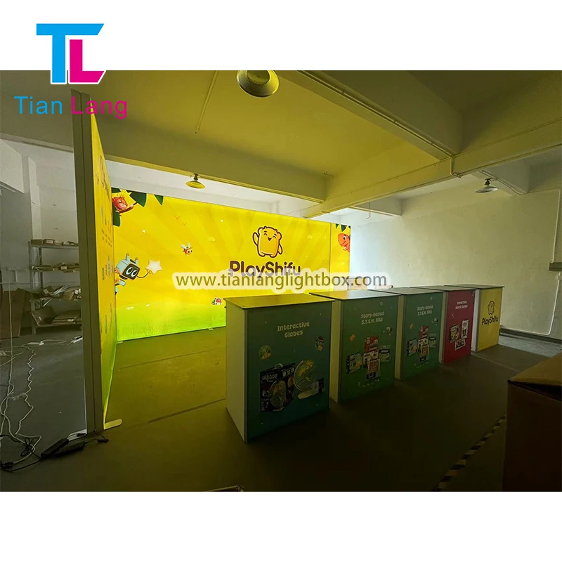 Stand Portatile in Alluminio per Pubblicità con Tessuto Teso, Vendite Calde di Moduli Modulari per Esposizioni con Tavolo LED Personalizzato