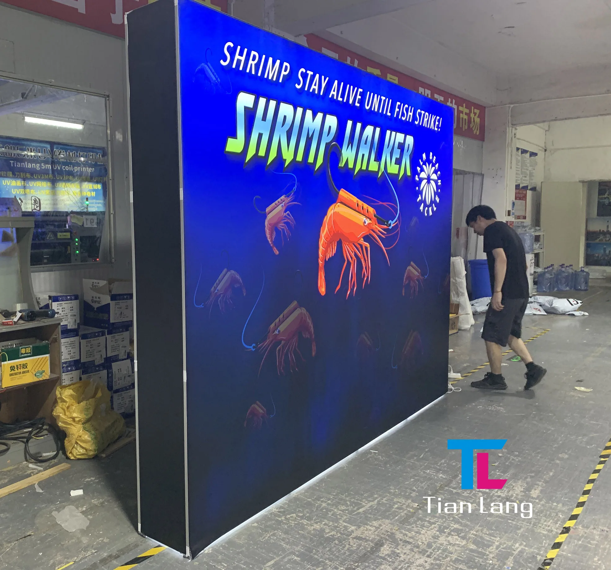 10ft הקמה מהירה לשימוש חוזר פרסומות מותאמות בד אלומיניום אירוסטיק טווח אחורי מוארך לתערוכות פופ מסחר