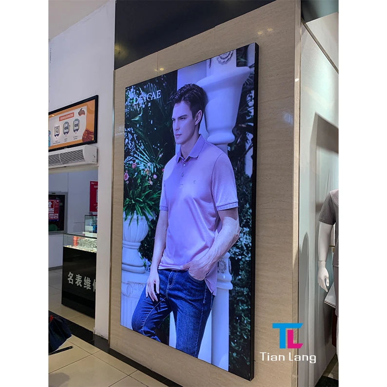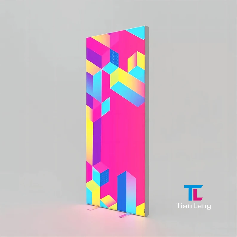 תיבה מאורה ללא מסגרת עם פשתן LED דו-צדדית, מוצבת על הרצפה לביצוע תצוגה פרסומית עם טכנולוגיית LED מרהיבה