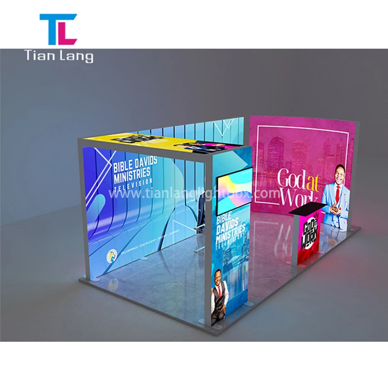メーカー カスタムポータブル 10 X 10 標準展示会ブースデザイン LEDスクリーン トレードショーブース ライトボックス