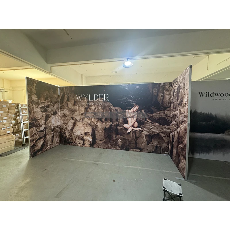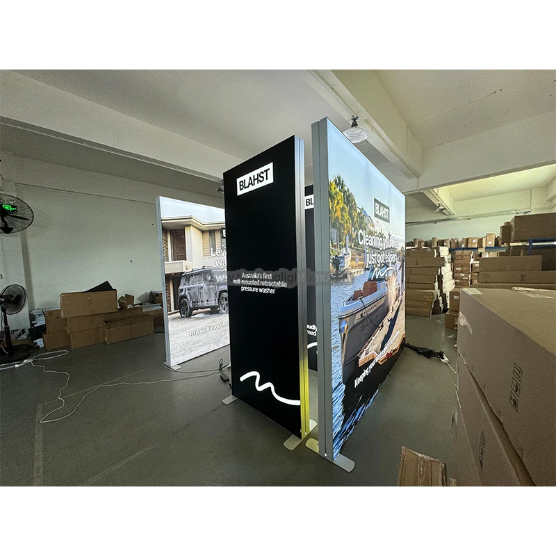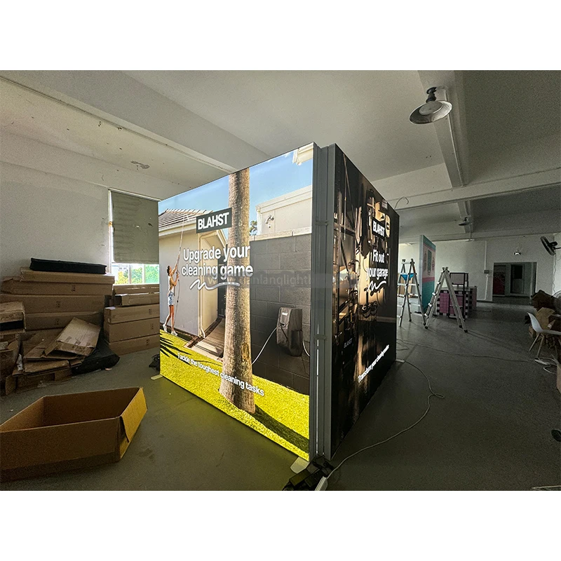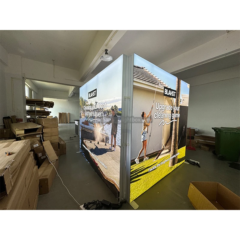 簡単設置 工具不要 アルミ製 コンパクト テンションファブリック トレードショー ブース 10x10 モジュラータイプ LEDライトボックス SEG ポップアップ 背面照明 バックドロップ