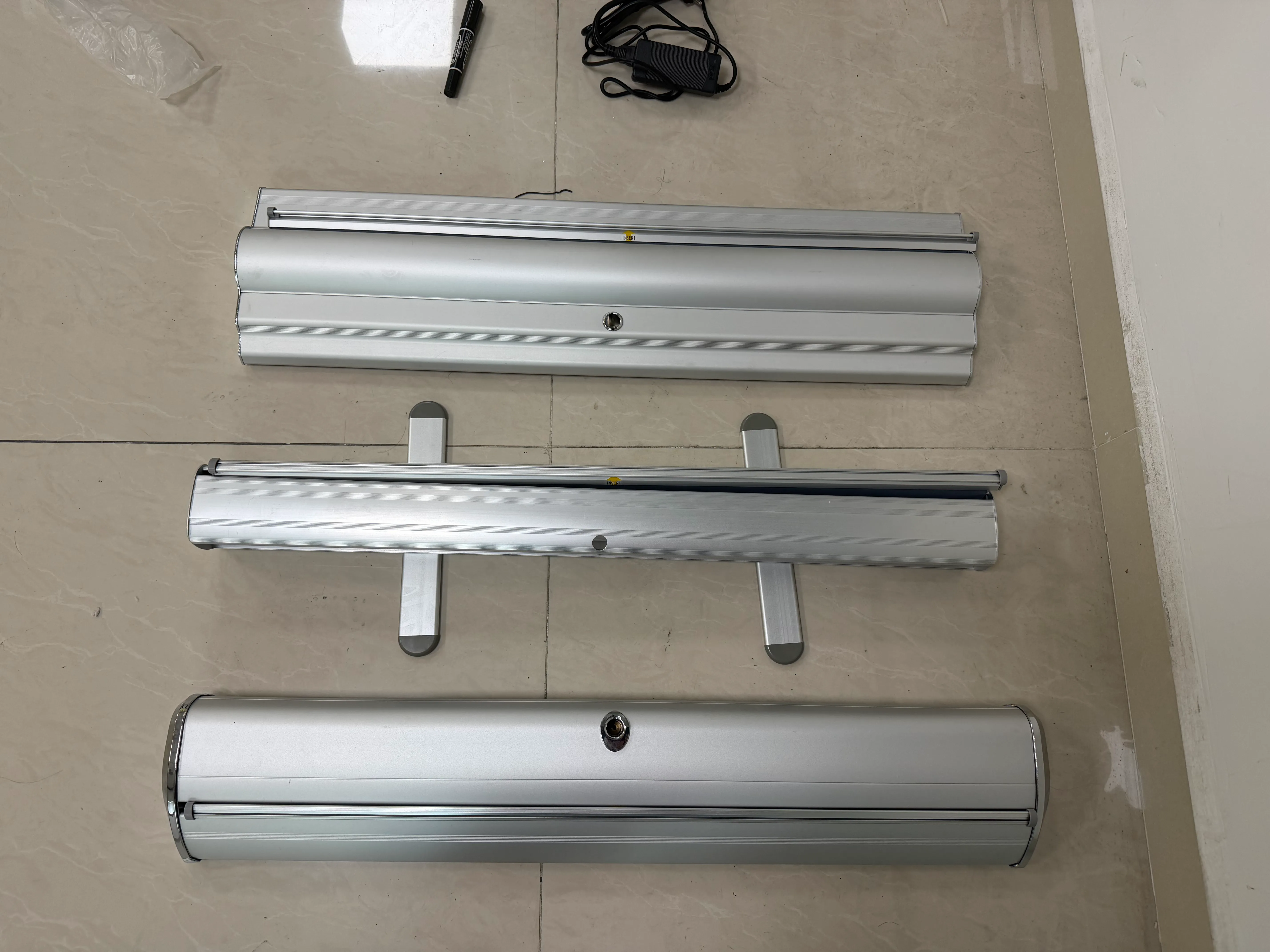 スプリング収納機構付きクラシックロールアップバナースタンド。グラフィックは自動的に巻き上がります。ポータブル設計で、展示会、会議、店舗およびさまざまな場面に適しています。