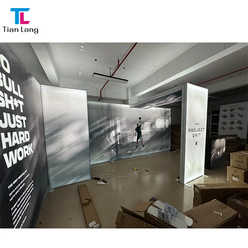 10x20ft მაღალ ხარისხის მინდივიანი Modular Aluminum Frame Portable Advertising Display SEG LED Lightbox Backlit Trade Show Booth