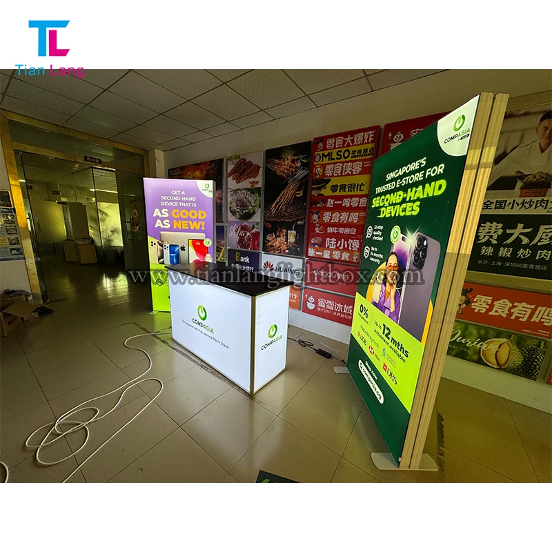 8 ფეხი Tension Fabric Trade Show ბაქლიტ ეკრანი Modular Exhibition Tradeshow მოდერნური დიზაინი Tool Free SEG პრომოციული სათვალიერო
