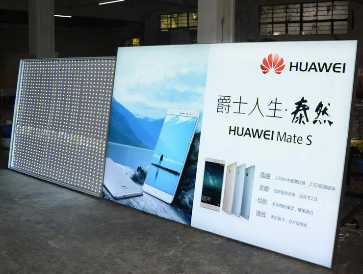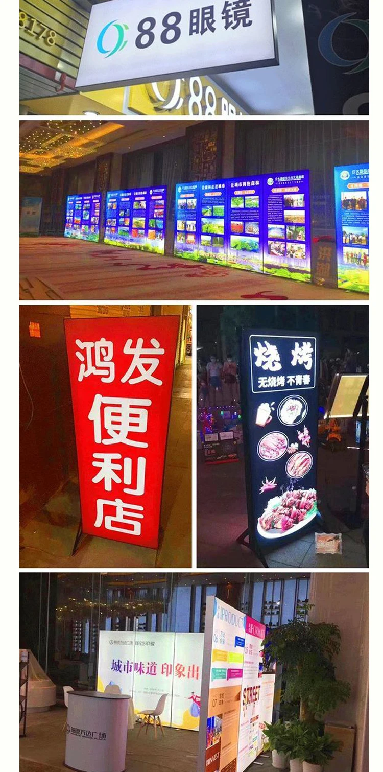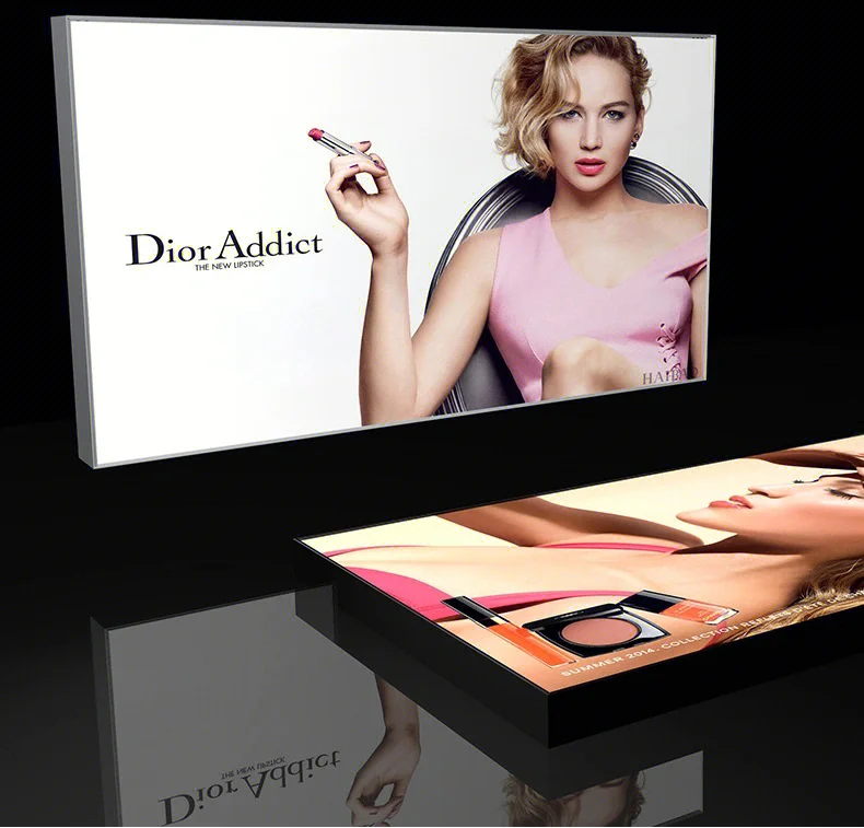 Populiariai pardavinėmi pagal užsakymą sukurti UV apšvietimo reklaminiai šviesininkai be aliuminio rėmo posteriaus audinys su LED šviesomis prekybos centro rodymui