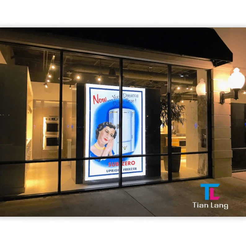 Šviesinė dėžutė iš audino ikraštinė tapyba yra vis daugiau naudojama vidiniam reklamos rodymui. Žema svorio audinio plakatas priekyje. Silpnas šviesos spindulys padaro tinkamą grafiką ar nuotrauką žmonėms.