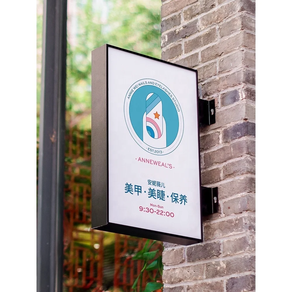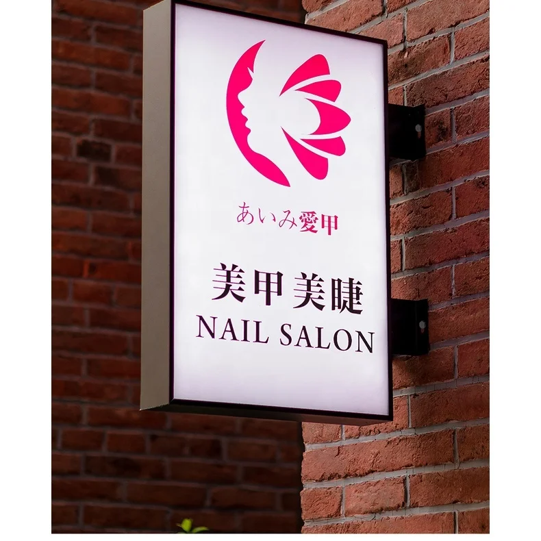 Papan Tanda Rumah Penyuaian Kotak Neon Led Dwi Sisi Bergantung Akrilik Segi Empat Billboard Manikur Dinding-Mounted Tanda Sisi Pintu