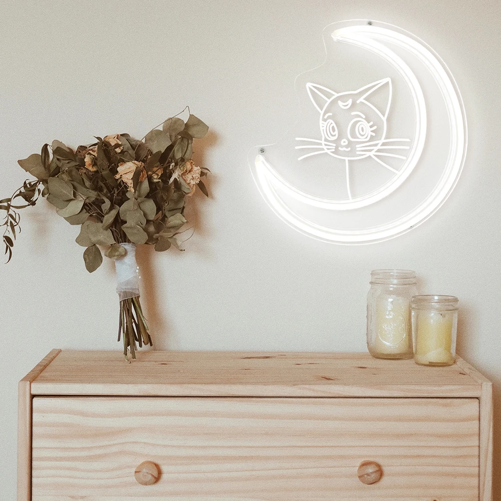 Segn naional Great Anime L-Għid ta' Bittrix Valentinijiet 10x10 In Bjan Sailor Moon segn naional Luna Cat Dekor Stoppielet Game Room