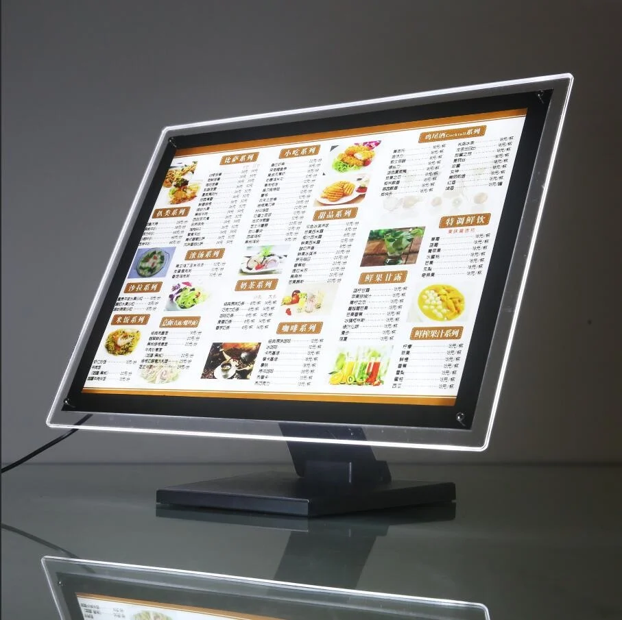 Reġina tal-LED kristall dimanzi A3 restorant stand menu segni luxbox: