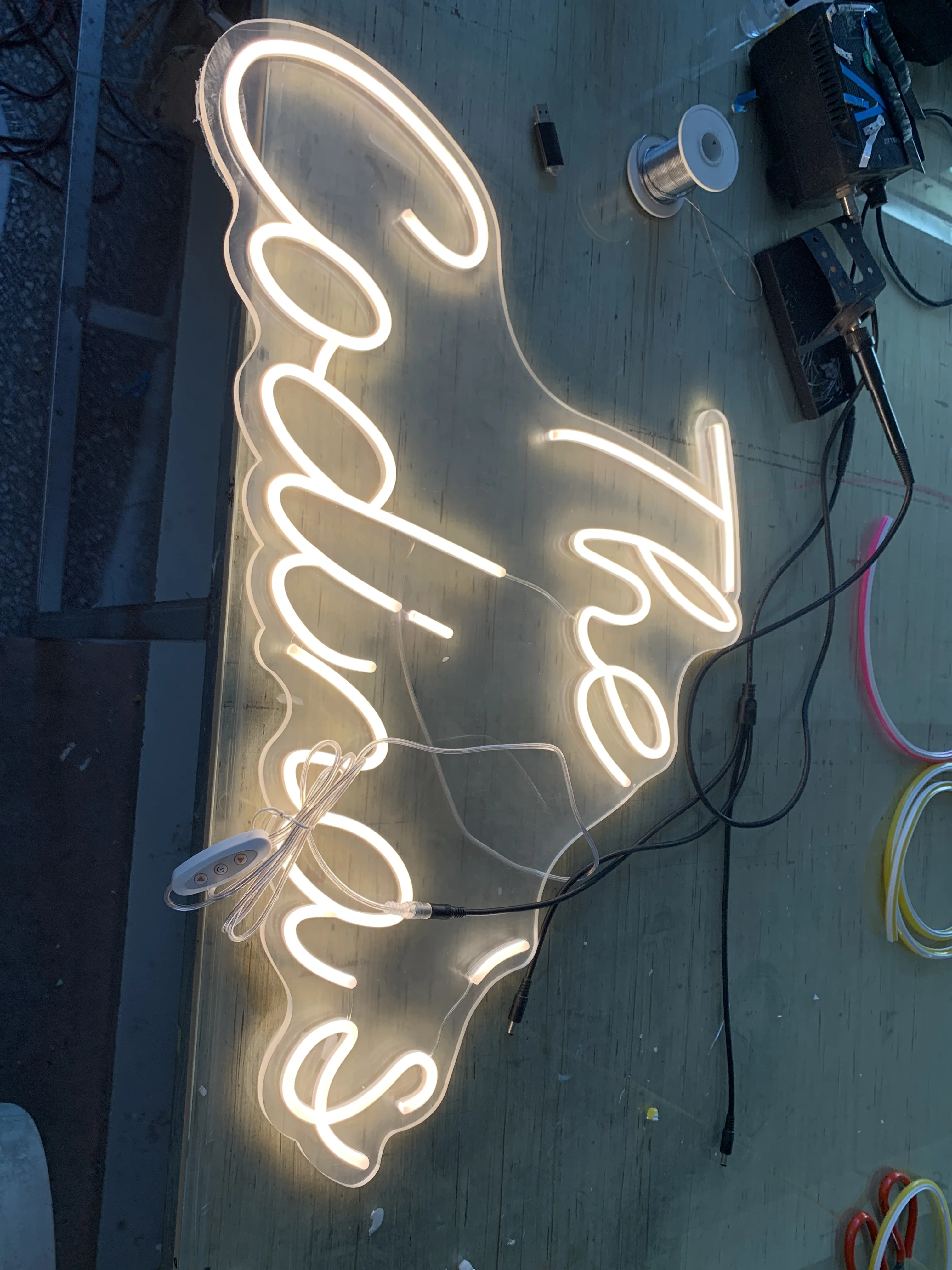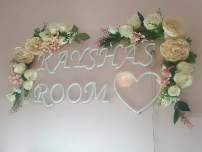 Wystrój pomieszczeń, litery neonowe w nazwach, niestandardowe wiszące na ścianie światła atmosferyczne