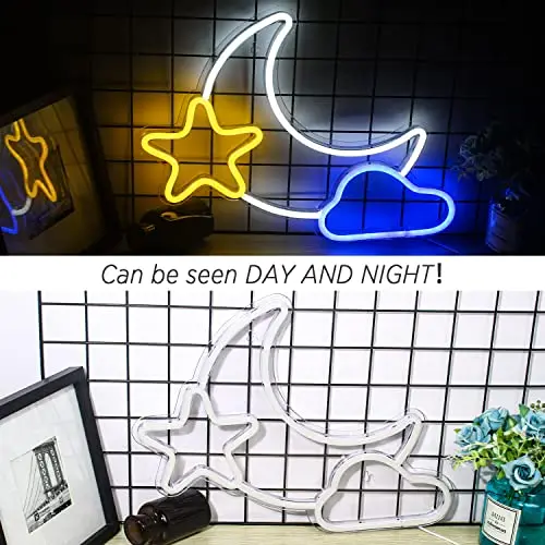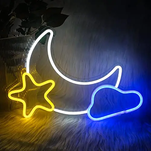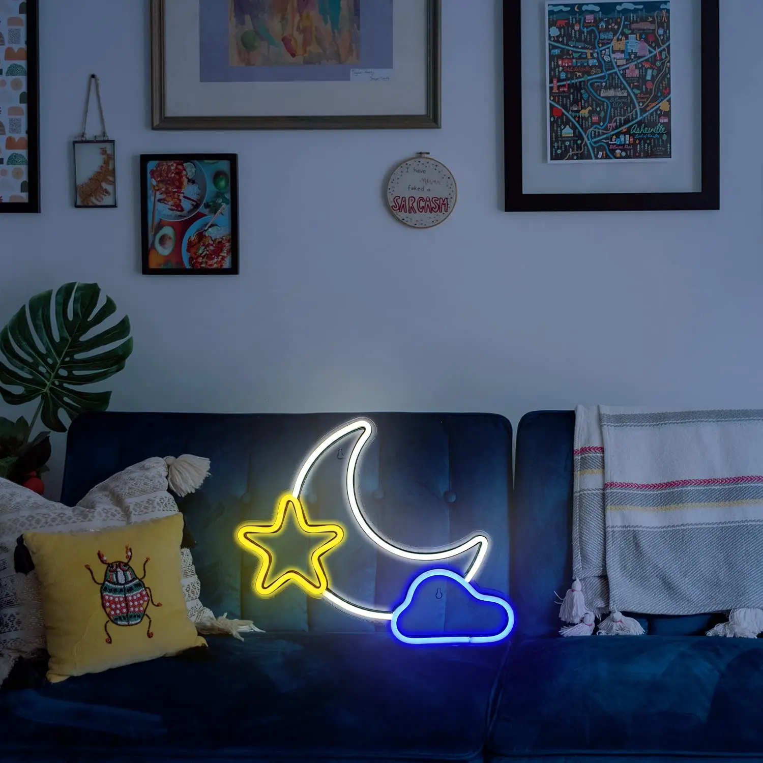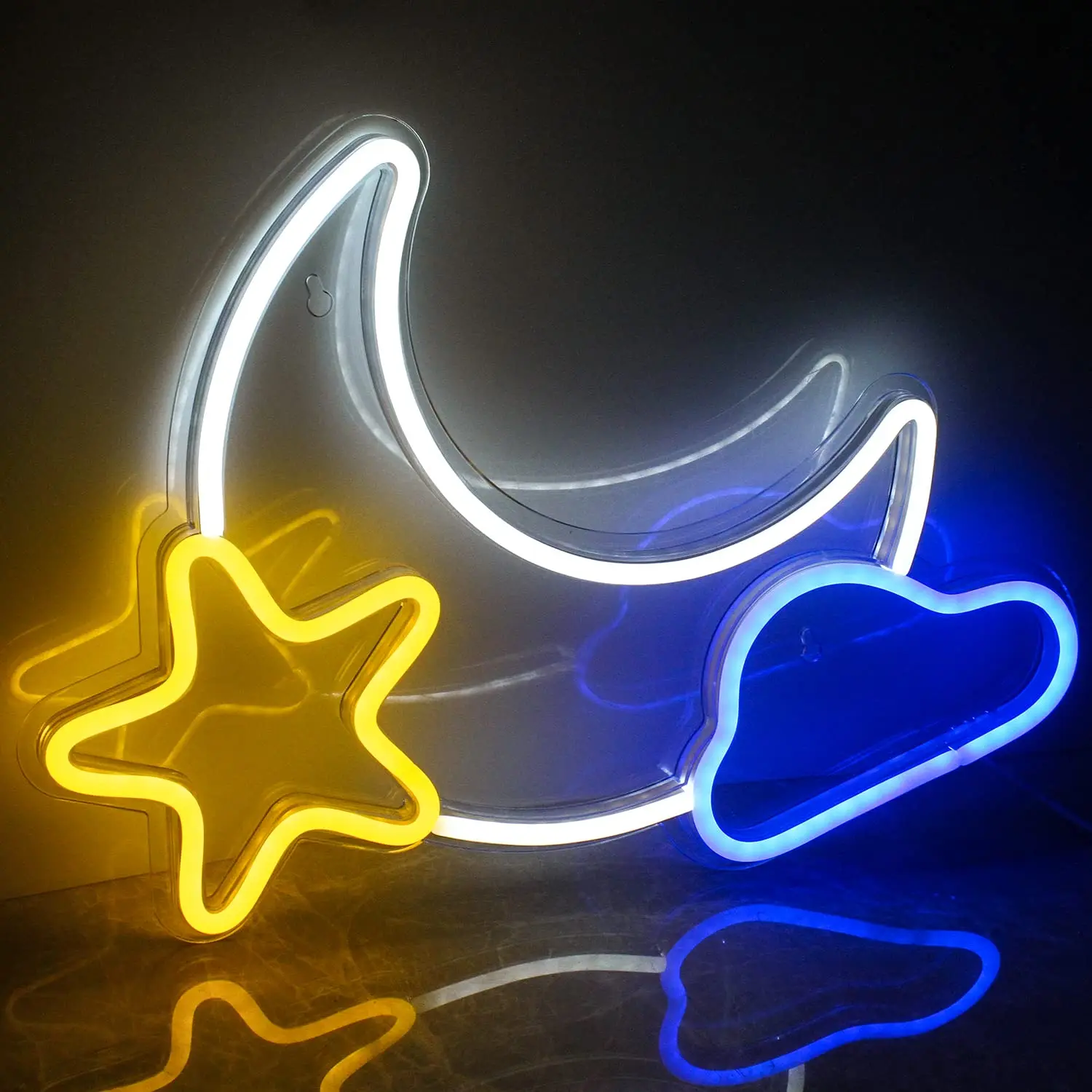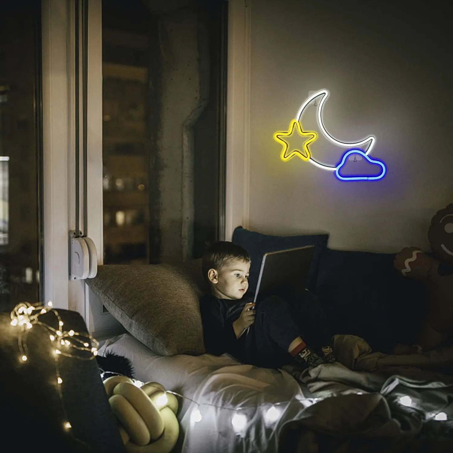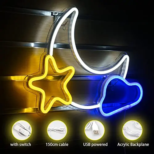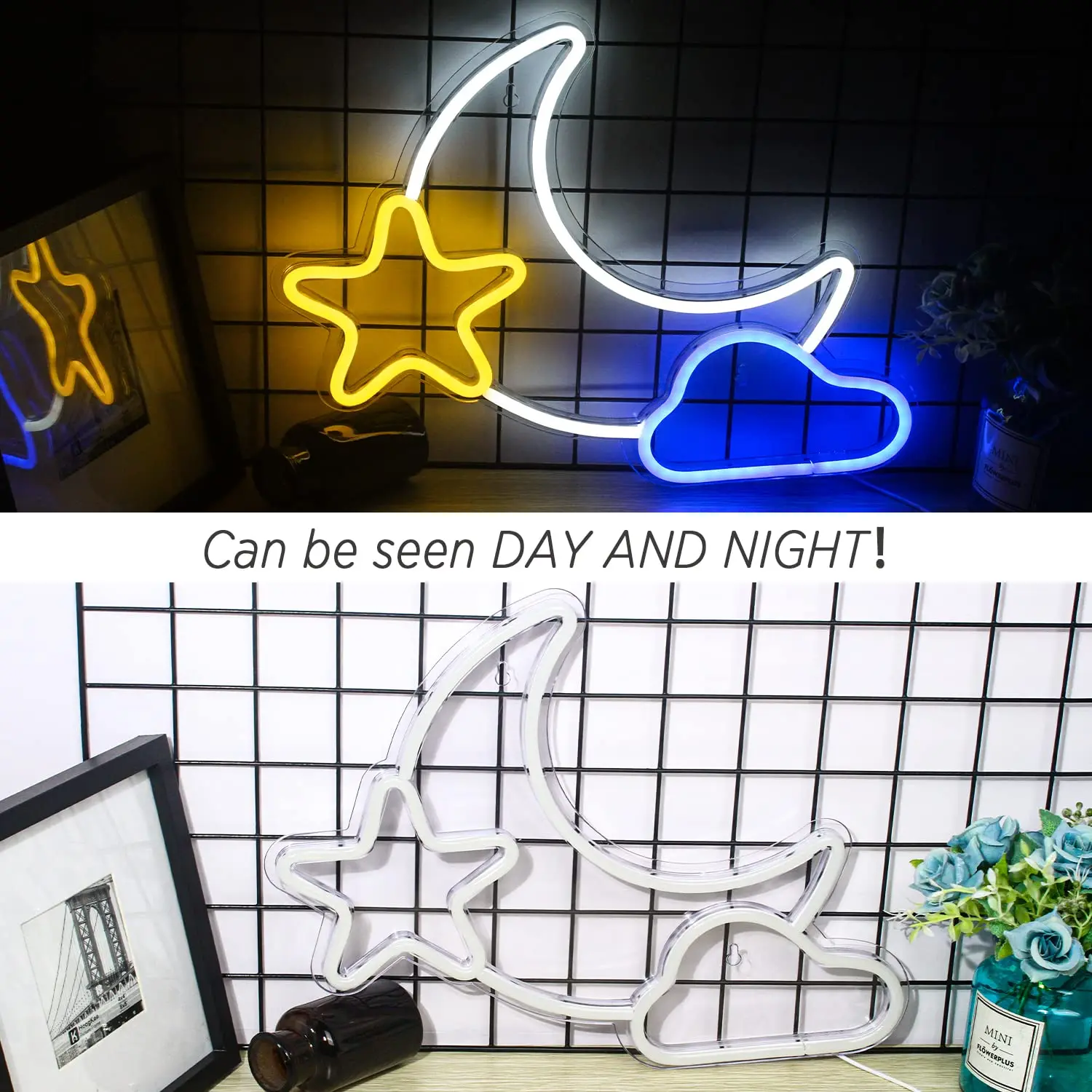 Неоновый знак Луна Звезда Облако, светодиодный, милая декорация для комнаты, эстетическая ночная лампа для украшения спальни, детской комнаты, подарки для девочек и подростков