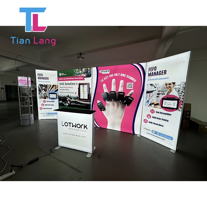 Na mieru velké SEG rámové LED osvetlené plátno Pop-up zády osvetlený reklamný stojan pre vystavačskú reklamu