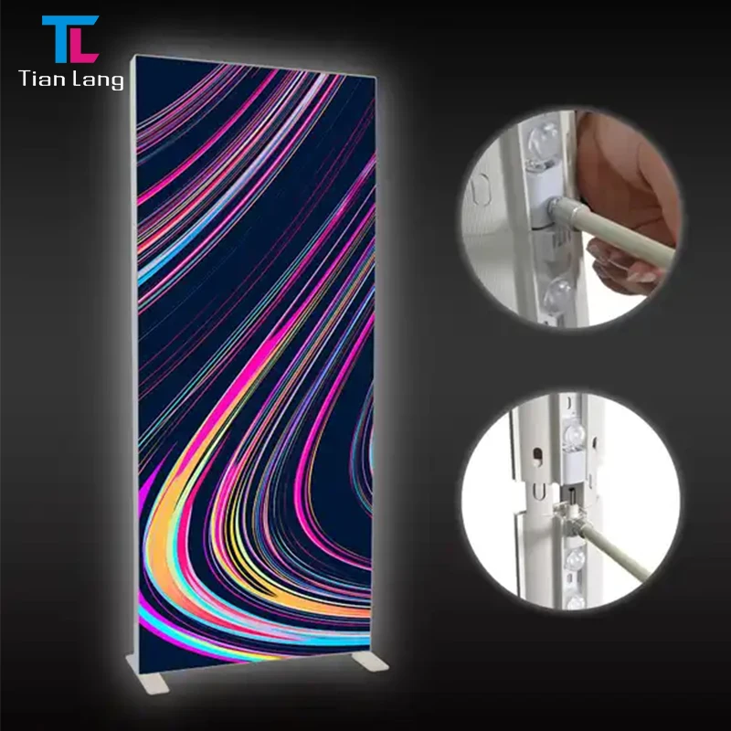 TianLang Výstavné Zaobladávačské Vybavenie Podlaha Stojace Led Osvetlené Alebo Edgelit Zobrazenie Reklamná Tension Tkanina Lightbox