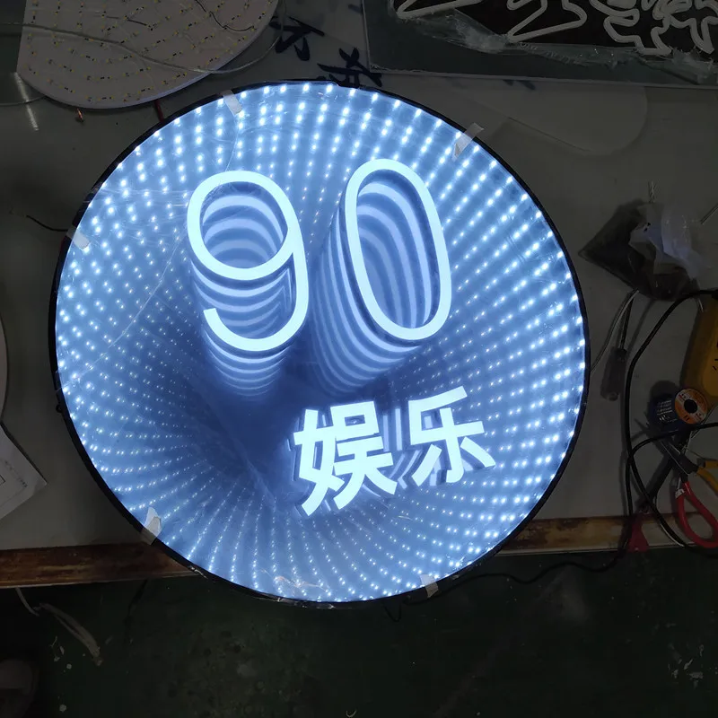 Svetilna tabla za tunel s neonovo svetlobo večplastnim ogledalom LED črkami neskončno dolgo razširjanje Ogledalna reklamna plošča