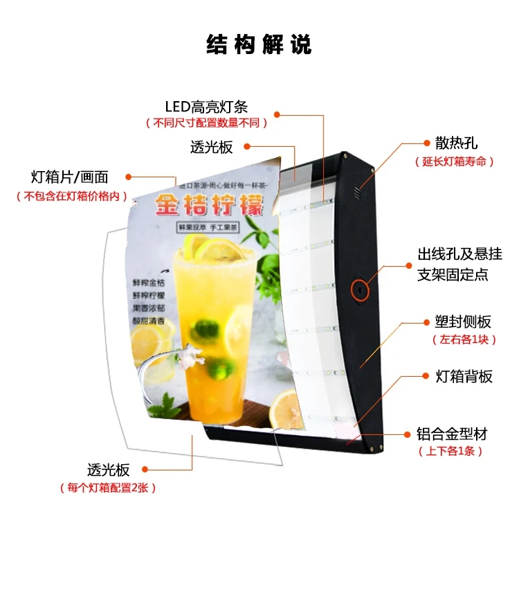 Transparent panelmaterial: PMMA och aluminiumalloysram integration, enkelt att använda och justera olika bilder
