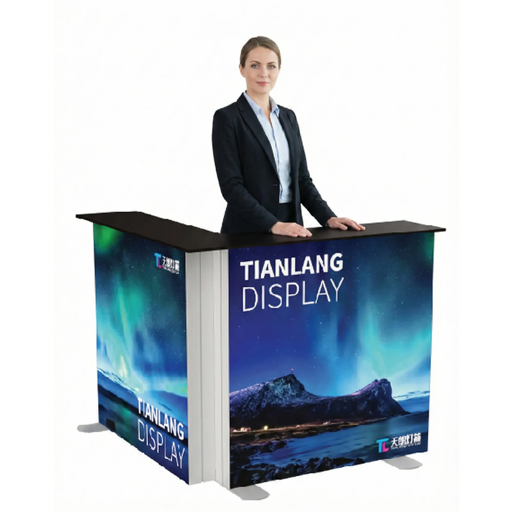 L-shape design cleverly divides functional areas: product display on one side, business negotiation on the other. Dual graphic area increases 80%, suitable for standard booths ≥6㎡. Supports multi-unit combination into U-shape or rectangle layouts.